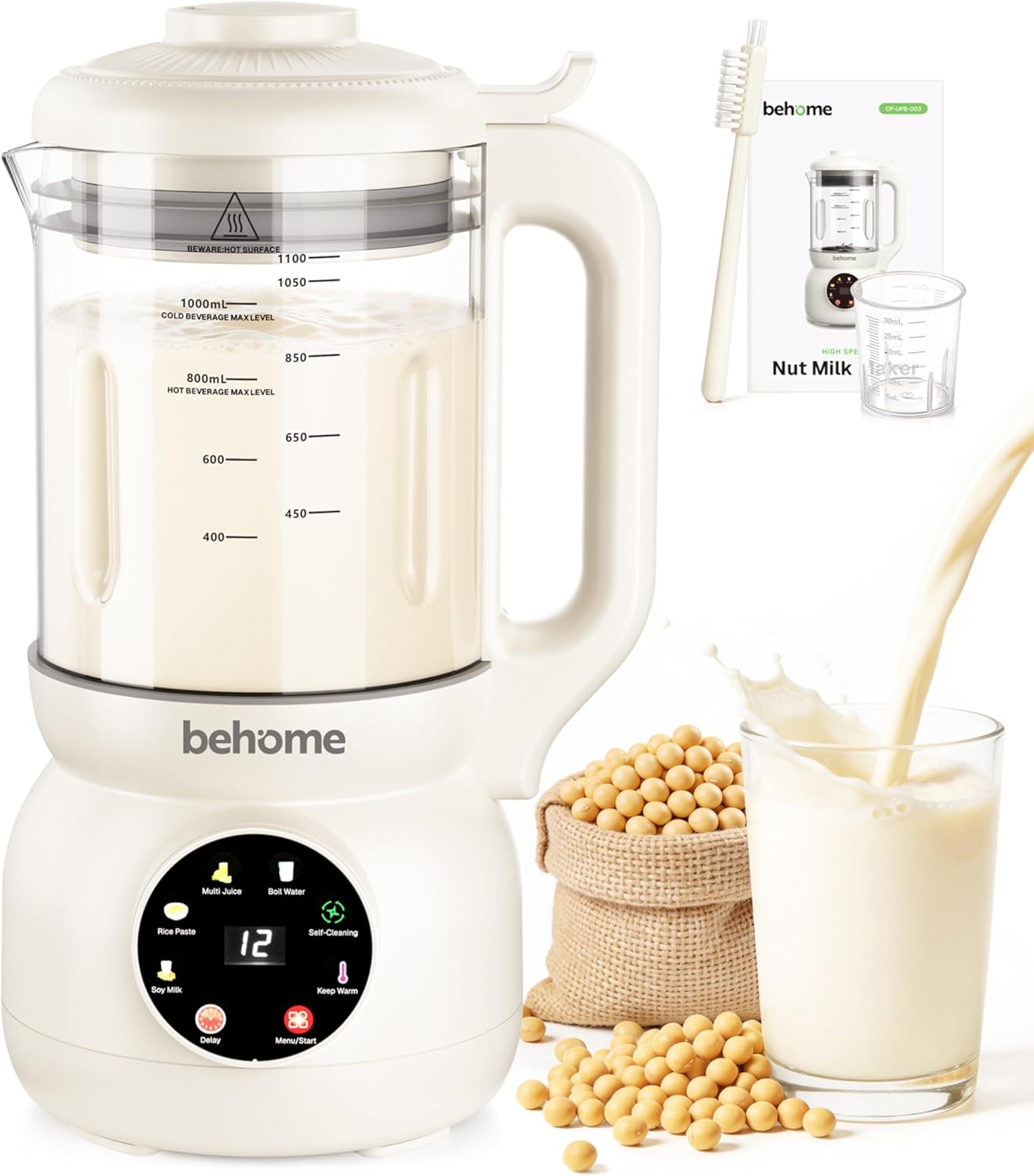 | Included Components | 1 × Nut Milk Maker (Main Unit with Glass Pitcher),1 × Cleaning Brush,1 × Measuring Cup, 1 × User Manual (with Recipes) |