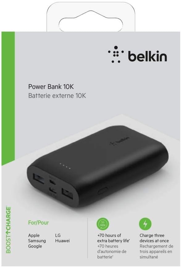 | Whats in the box | Belkin Portable Power Bank Charger 10K (Portable Charger Battery Pack w/ USB-C + Dual USB Ports, 10000mAh Capacity) for iPhone, AirPods, iPad and more, Black |
