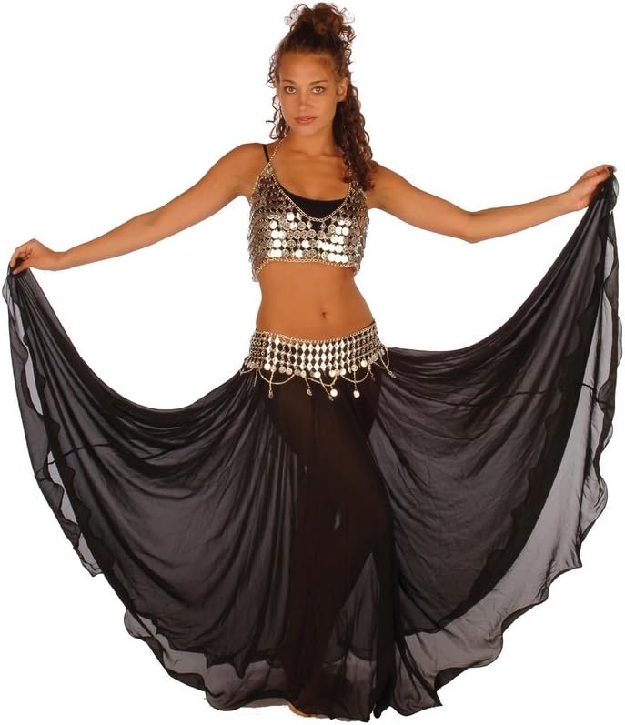 Greca....3 piece coined costume with chiffon circle skirt. This fun and flirty set looks great under stage lights and is also great for restaurant gigs.