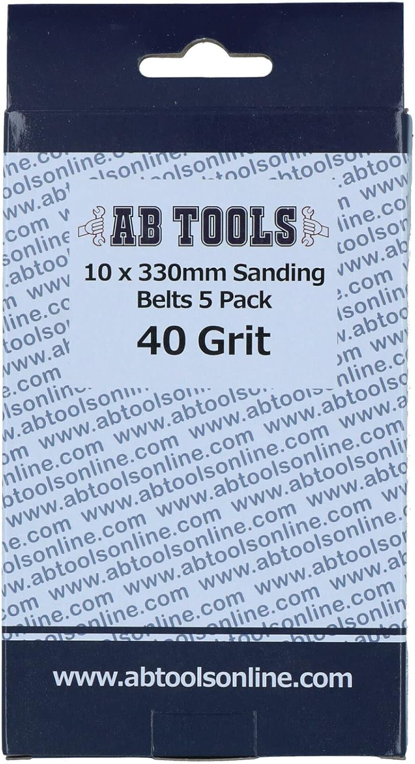 Professional tool for commercial or occasional use Flexible, durable aluminium oxide sanding belts Suitable for use on wood, paint, varnish, plastics, plasters and light for metal sanding jobs Suitable for the majority of portable machines / sanders Fully resin bonded Size of the discs belts 330mm x 10mm Suitable for all sanders as well as other makes which require sanding belts 330mm x 10mm such as HITACHI / MAKITA / RYOBI / BLACK & DECKER / BOSCH etc Coarse 40 grit so suitable for rapid removal of paint and varnish This listing is for a pack of 50 sanding beltsSPECIFIC SPECIFICATIONS BELT SIZE - 330mm x 10mm PACK SIZE - 100pc 40 GRIT - suitable for rapid material removal for example paint / varnish etc