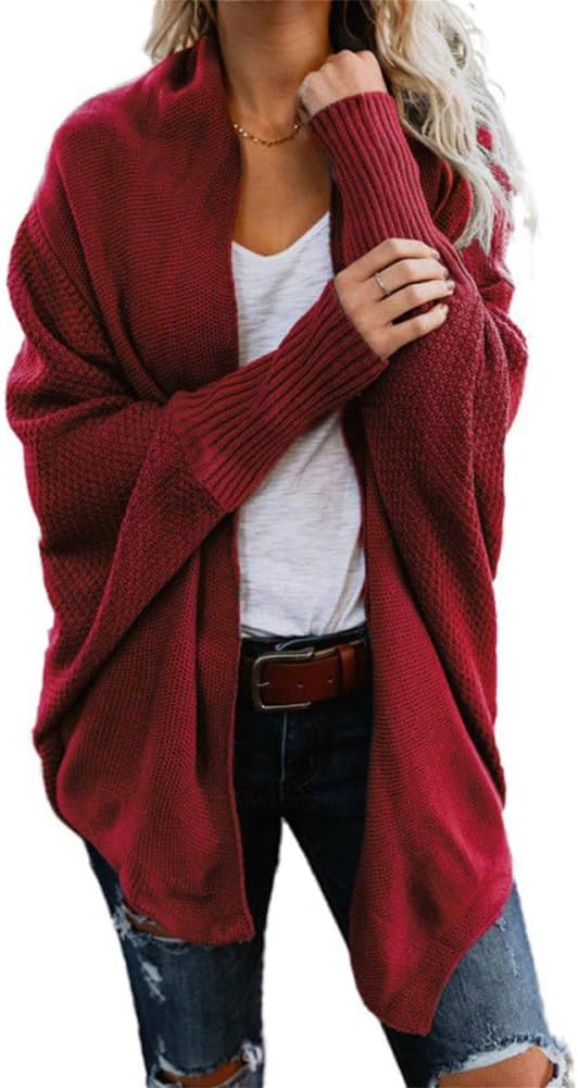 Bengbobar Women's Print Uniform Tops Khaki Loose Irregular Batwing Sleeve Sweater Knit Stylish Daily Wear Cardigan For Women