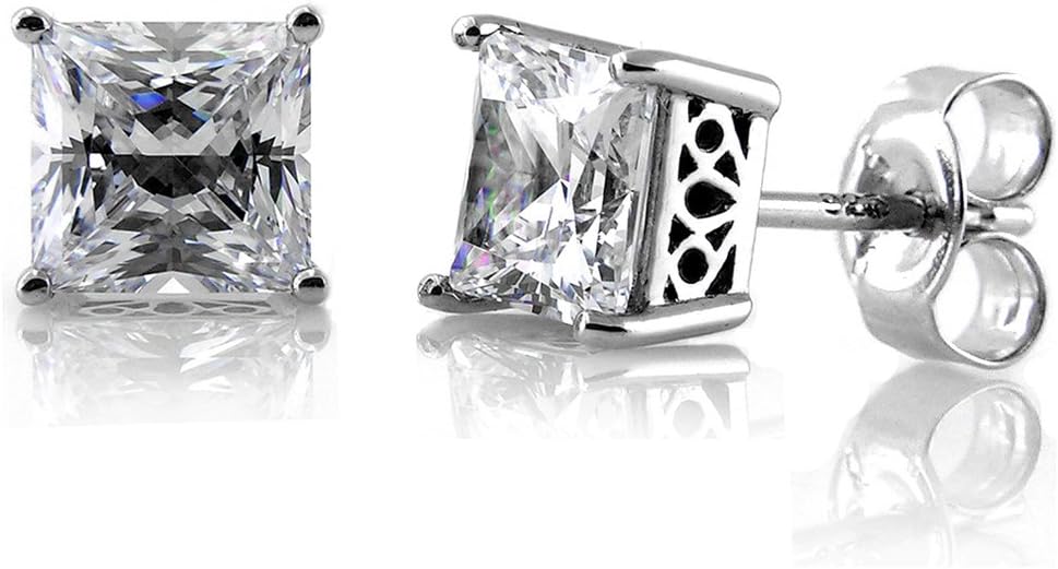 Add sophistication with these sterling silver solitaire earrings, featuring asscher, cushion, and emerald cut cubic zirconia. Suitable for helix cartilage and traditional wear, these earrings complement any birthday, wedding, or anniversary wardrobe. Crafted with fine 925 sterling silver. Set with premium grade cubic zirconia CZ. Posts with butterfly backs. Imported.DISCLAIMER: CZ carat weights are approximate and provided as diamond equivalents. Intended for adult women.