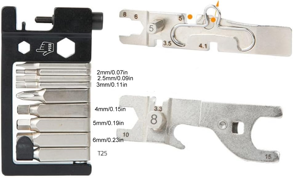 Features: Convenience to carry, including necessary tool, usings this bicycles tool Set can help solve most bicycles problem. Easy to use, suitable for most type of Bike, motorbikes. This bike repair kits is small enough to fit in your pockets or trouser pockets. Equipped with a Storage bag, bicycles Repairs tool can packed in the storage bag and fixed on the bicycles base. Fine workmanships, durability and not easy to damage, with more functions. And it is also for you. Specifications: Materials: Metal and Plastics Size: As shown in the picture note: Please allow 1-2cm errors due to manual measurement, make surely that you not mind before order. Due to difference between different monitors, the picture may not reflect the actual color. Package Includes: 2PCS Tire Prying Rod 6PCS Tire 1pc Roughening Sheet 1pc Outer Hexagonal Wrenches 1pc Multifunctional Tool