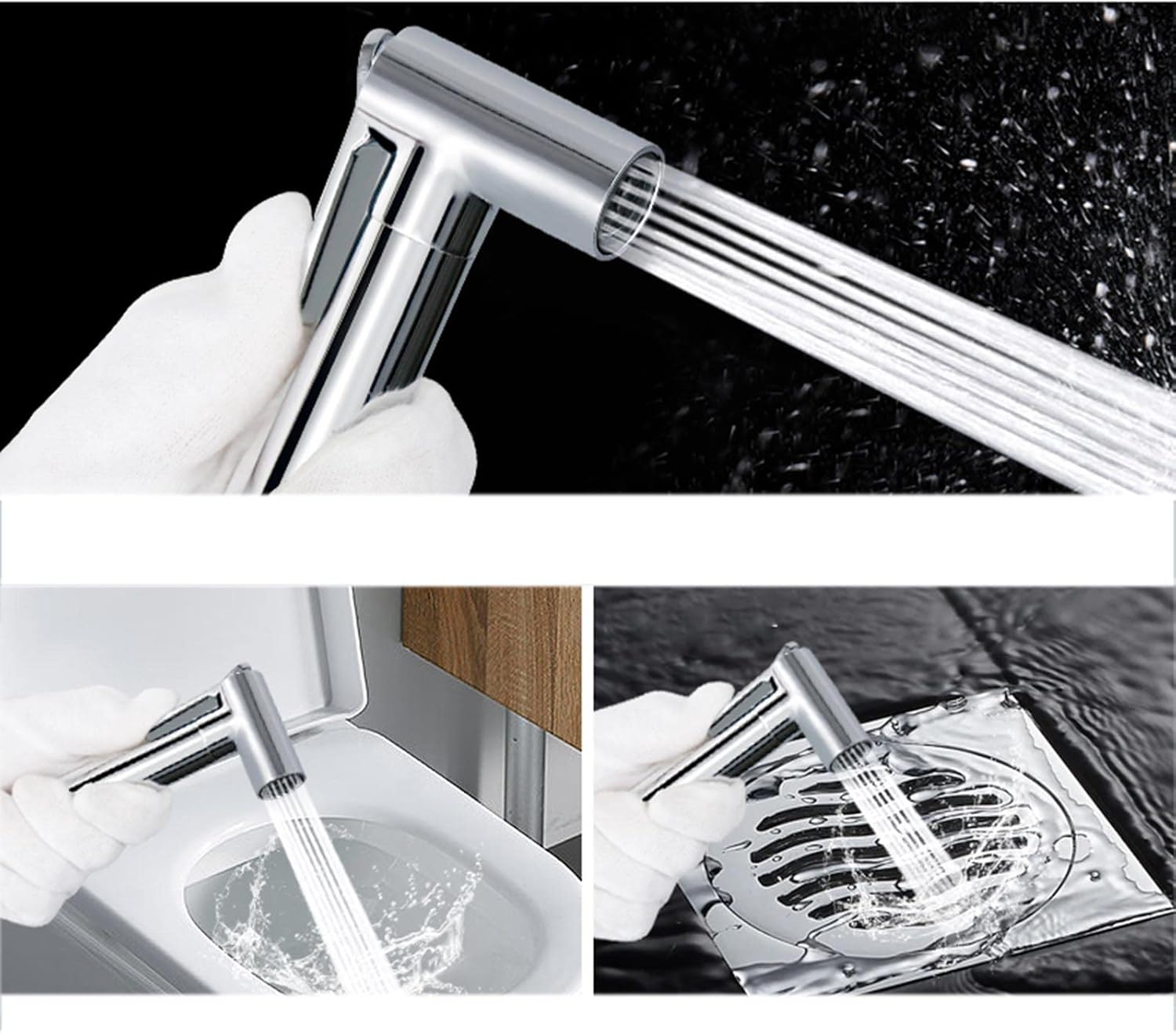 SprayersType: bidet faucet / toilet faucet / bidet showerUses: Suitable for feminine cleaning, toilet or corner cleaning, car wash, garden bathing, adult, disabled, elderly, bathroom, spa or shower.Specification:Product name: Handheld bidet sprayerShower head material: BrassAngle valve: brassHose Material: Stainless SteelApplicable places: villa bathroom, private club bathroom, hotel bathroom, club bathroom, family bathroom, etc.Install:Installation method: wall-mountedConnection: G1/2"Hot and cold water: nonePackage Included:1 x Handheld bidet sprayer1x angle valve1 x Shower Hose (1.2m)Mounting AccessoriesKind tips:Manual measurements of different sizes will have CE retention errors. Please refer to the actual product!The item may differ slightly from the picture due to lighting and screen display.