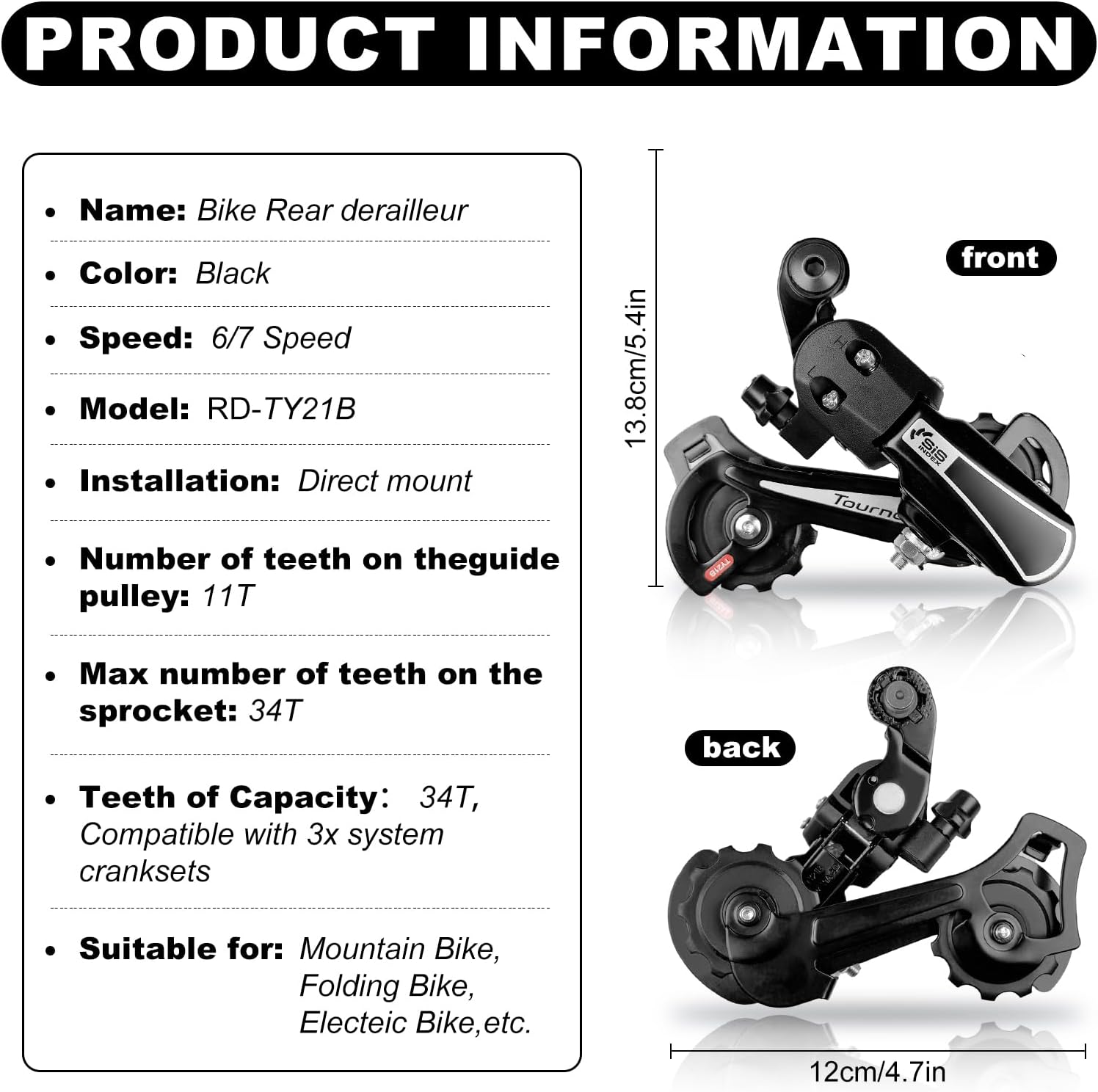Bike Rear Derailleur RD-TY21B 6/7 Speed Direct/Hanger Mount Derailleur