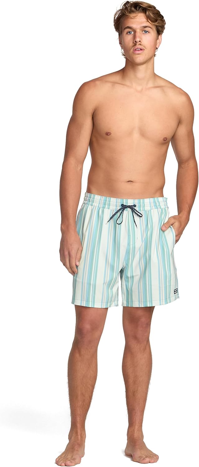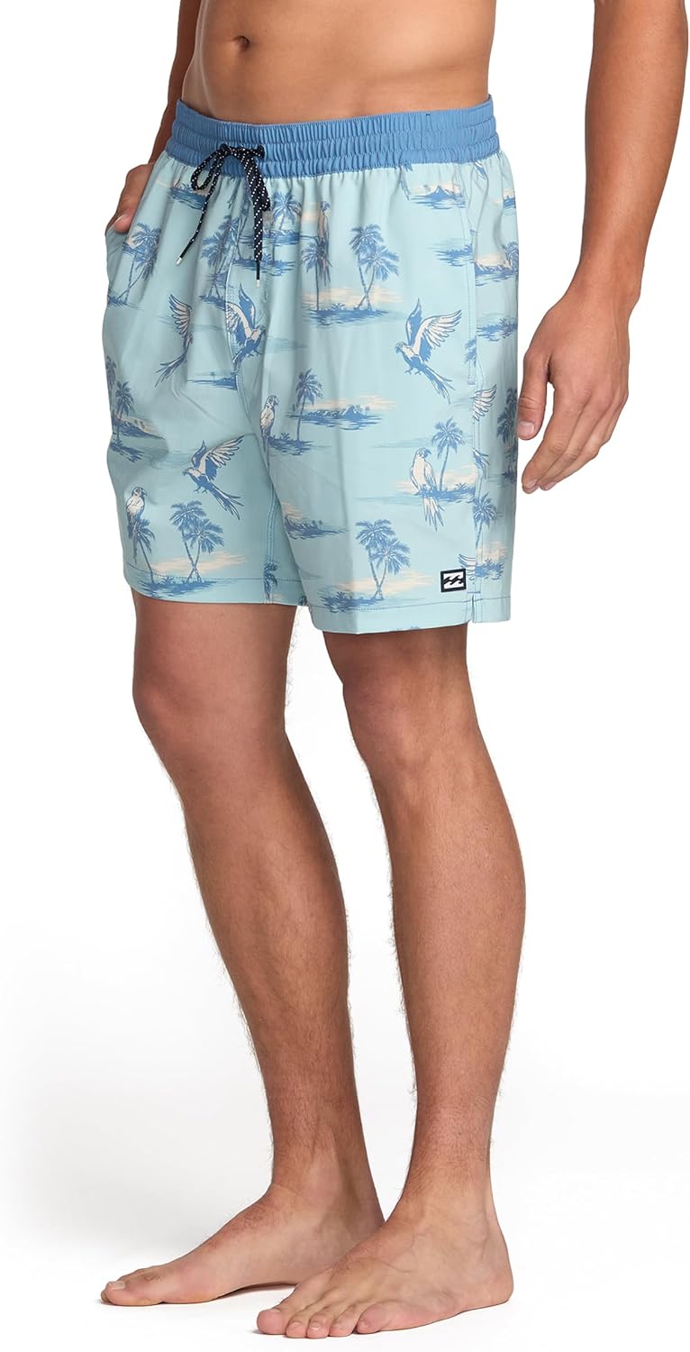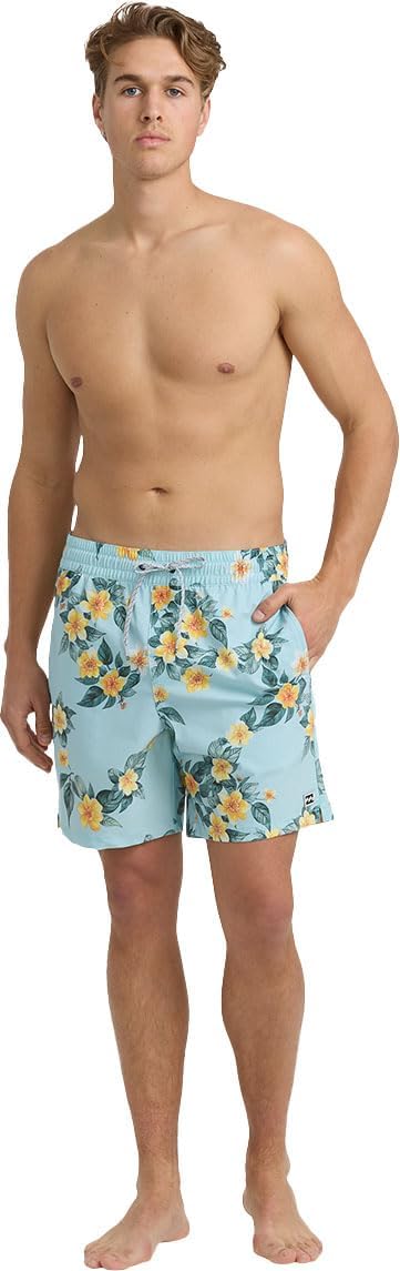 Dive into surf-inspired style with Billabong's collection of apparel, designed to seamlessly blend iconic surf heritage with modern versatility for your everyday life and outdoor adventures. Experience the quality of carefully selected fabrics and the laid-back aesthetic of coastal designs. From comfortable essentials to stylish statement pieces, Billabong offers a wide range of clothing crafted to enhance your lifestyle. Whether you're hitting the waves for a surf session or simply enjoying a day outdoors, these cool and colorful swim trunks have you covered. Engineered for quick-drying comfort, they are perfect for swimming, surfing, or playing at the pool, beach, park, or even your own backyard. With built-in UPF 50 sun protection, you can enjoy your time under the open sky with added peace of mind. Crafted from a durable polyester and cotton blend, these swim trunks provide a comfortable and flexible fit that moves with you. The design includes a stretchable waistband with a drawcord, ensuring a secure and adjustable fit for all your swimwear activities. Convenient side and back pockets offer practical storage for your essentials. Designed with a classic 16-inch outseam, these swim shorts offer a comfortable regular fit. Available in sizes Small, Medium, Large, and X-Large, these low-maintenance swim bottoms are also machine washable, making laundry day a breeze. For those seeking a more relaxed and roomier feel, sizing up is recommended.