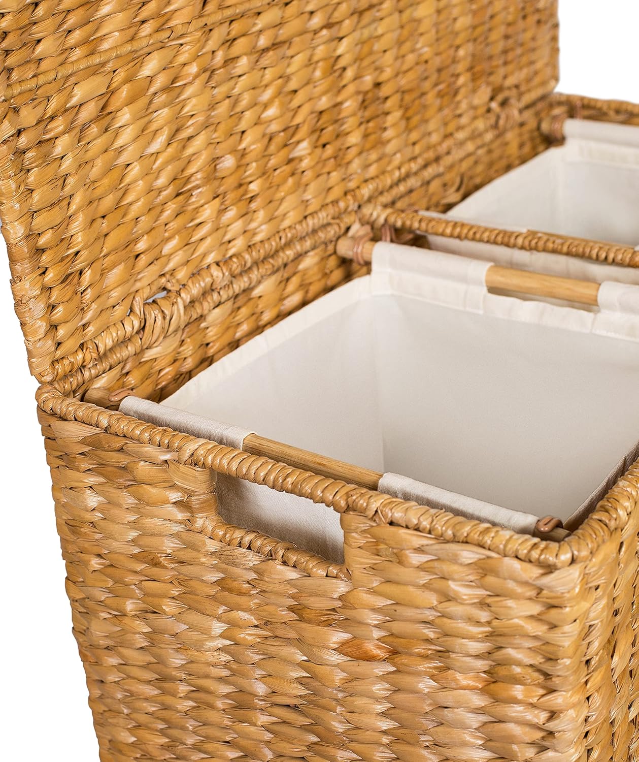 Keep your laundry neat and organized with the Sofia + Sam Divided Hamper. The oversized hamper is hand-woven of natural, sustainable Seagrass or Abaca fibers and includes two removable cotton canvas liners.