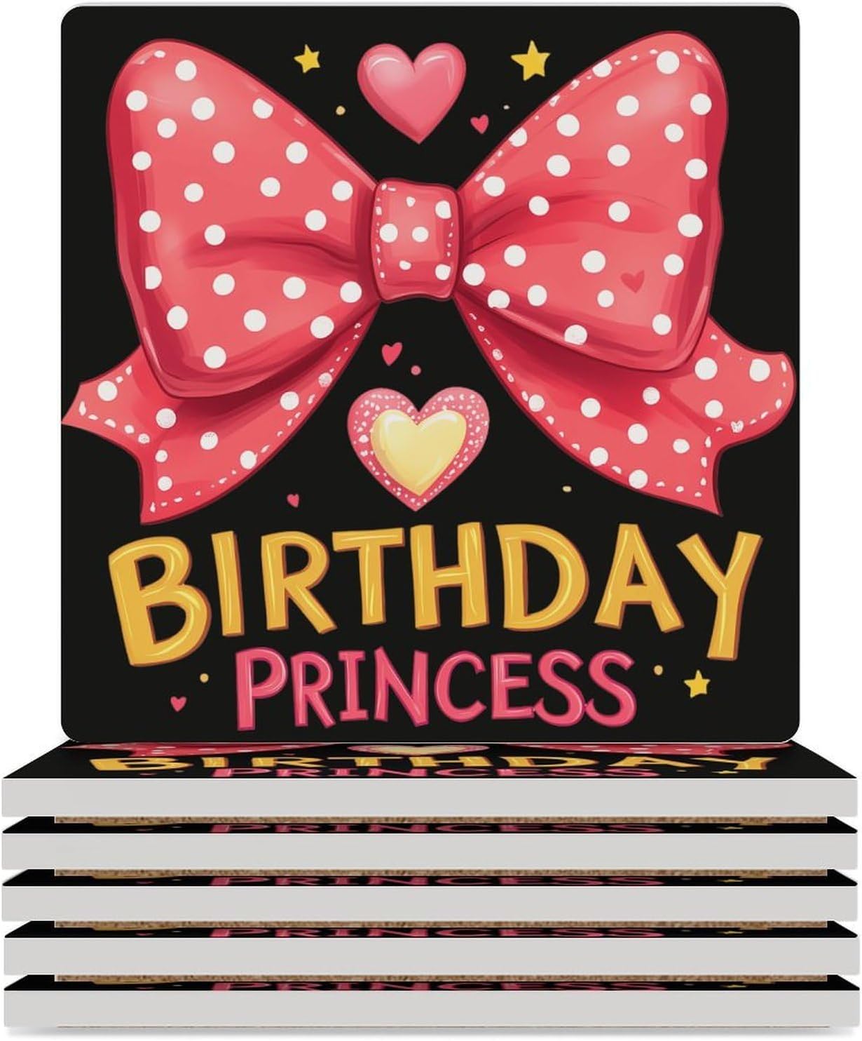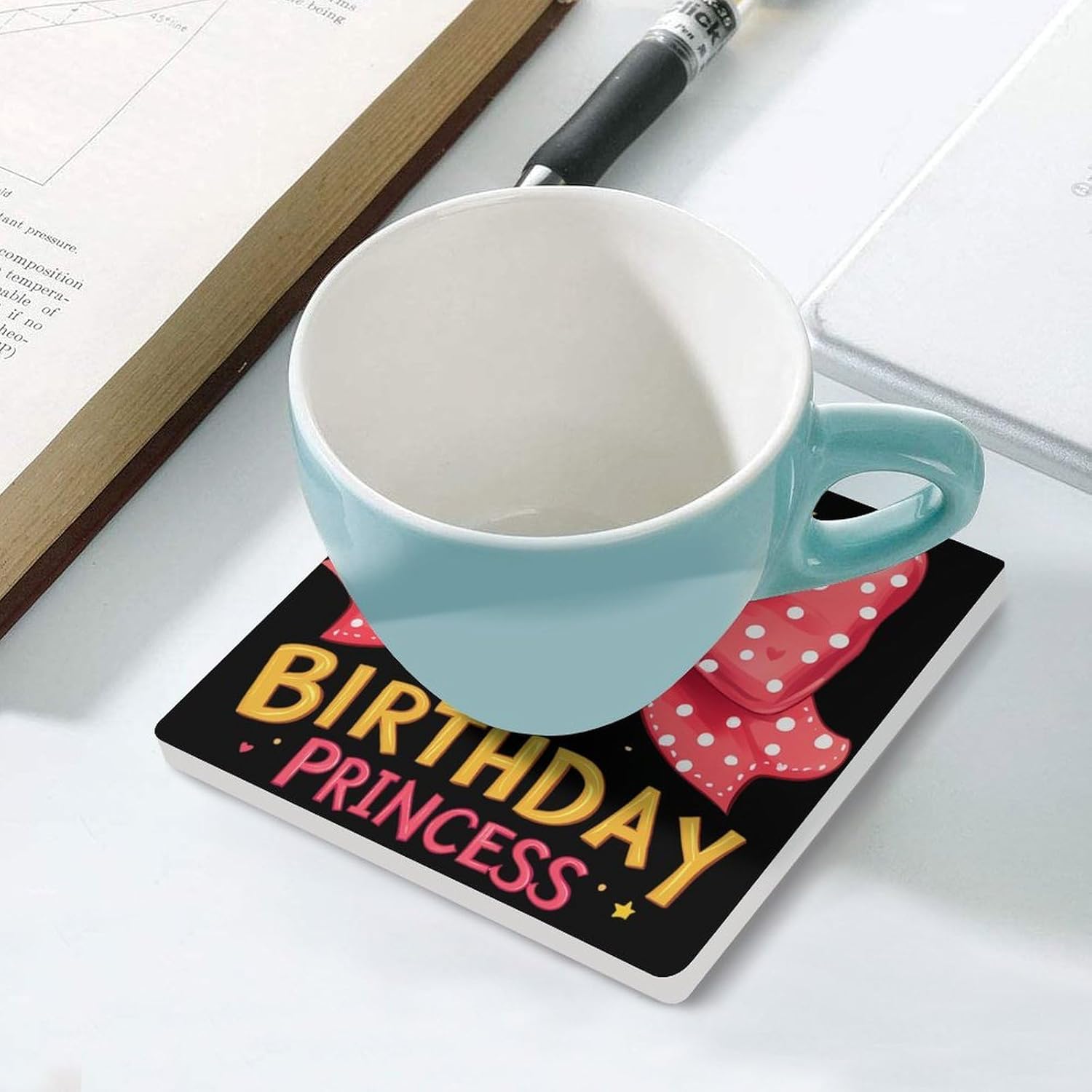 Birthday Princess Ceramic Coasters Set Square Drink Coasters Table Coaster for Kitchen Desktop Decor