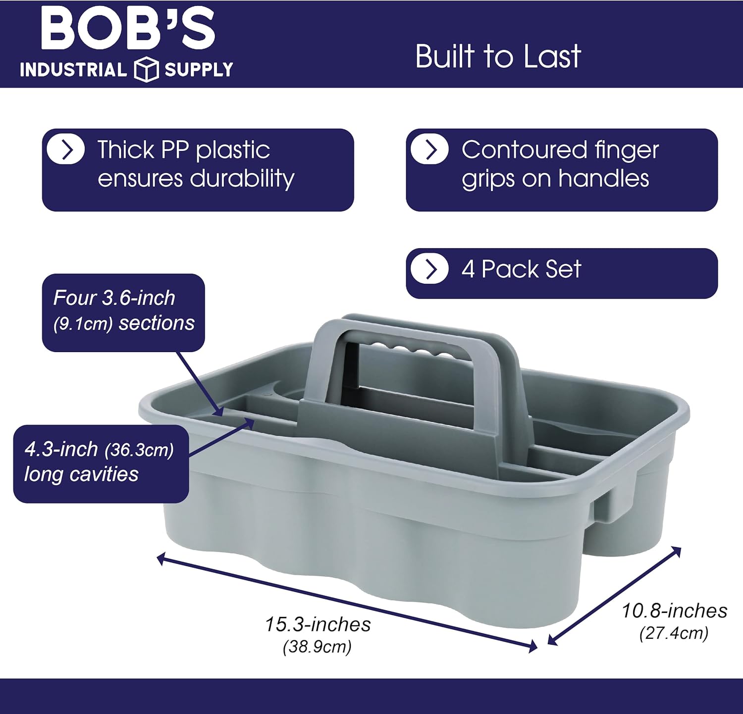 Use the BISupply 4 Pack Cleaning Supply Organizer Cleaning Totes with Handles in your garage, bathroom, kitchen, or in your car detailing shop, cleaner van, hotel laundry room, or office janitorial supply closet. 4 pack of large utility caddy totes allows you to organize your whole house or make sure that each housekeeper, janitor, or maid has a separate cleaning supply caddy with handle. Organize various window and floor sprays and cleaners, scrapers, brushes, sponges, towels, and more in the 8 rounded sections. You can even use this tool caddy organizer with handle as a reusable drink carrier for delivery drivers to transport multiple coffees, soft drinks, sports bottles, and more. Take your cleaning service on the road with this 4 pack storage caddy for cleaning supplies. Warning: This product can expose you to chemicals which is [are] known to the State of California to cause cancer and birth defects or other reproductive harm.