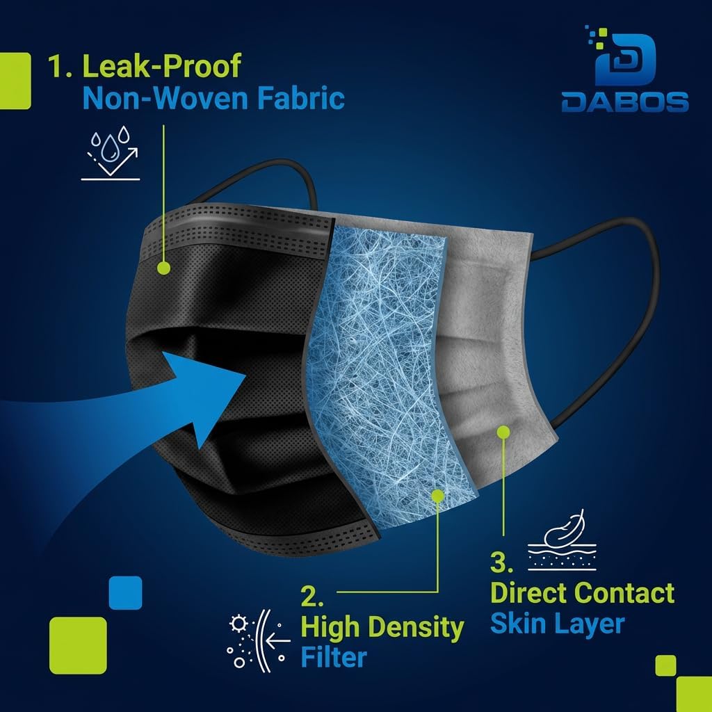 These Black 3-Ply Disposable Face Masks are designed to provide comfortable, everyday face coverage in a lightweight and breathable format. The three-layer construction offers dependable performance while maintaining airflow for extended wear. The soft elastic ear loops gently stretch to fit securely, while the adjustable nose clip helps contour the mask to your face for improved comfort. The lightweight material is suitable for daily routines, office environments, commuting, travel, and general indoor use. Featuring a sleek black finish, these masks deliver a simple, modern look that complements any outfit. Easy to carry and convenient for single use, they are a practical option for keeping on hand at home, at work, or on the go.
