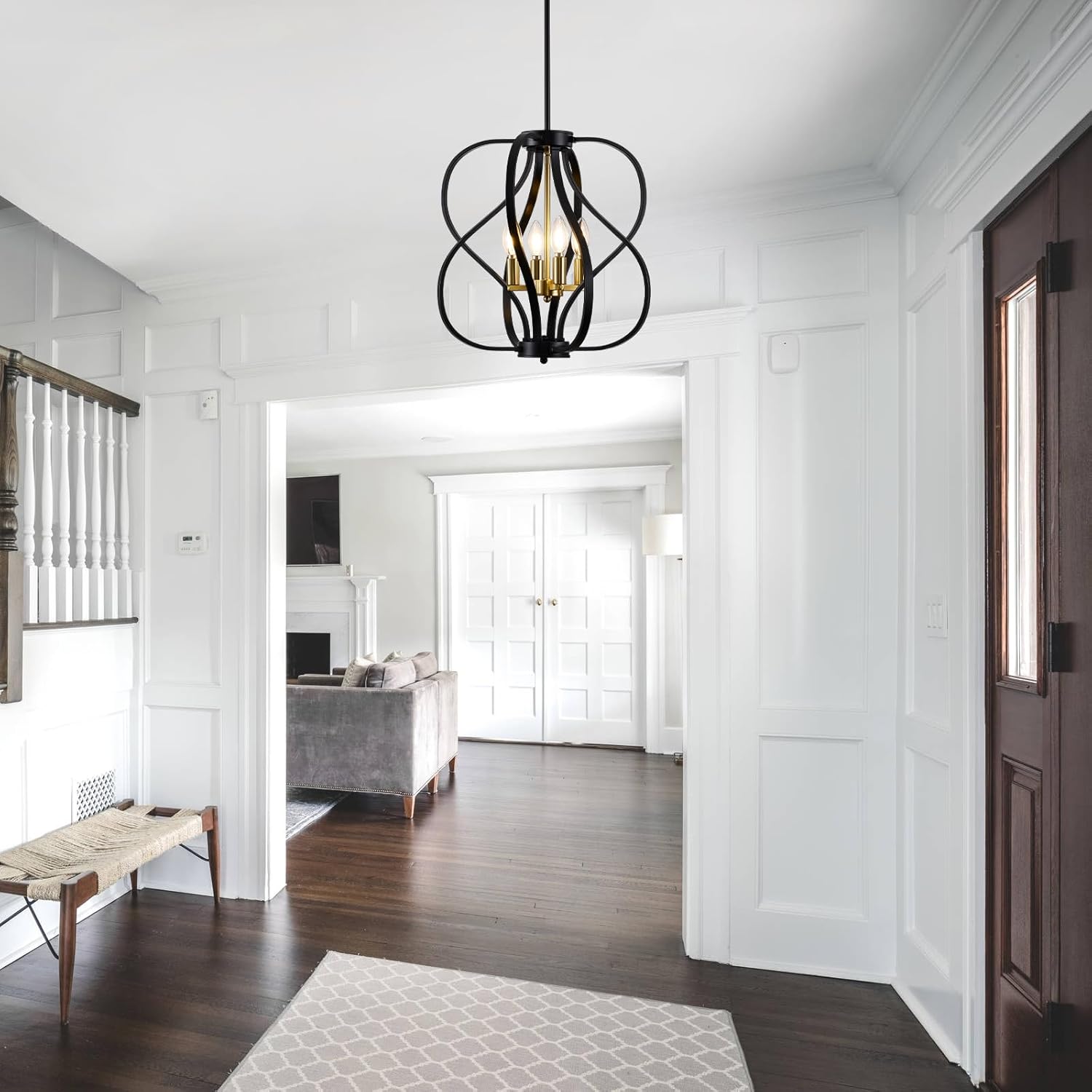 • High Quality Metal Material - Our vintage black farmhouse chandelier is made of metal, with a polished surface, strong structure, rust resistant and easy to clean. In addition, this entryway chandelier for foyer is easy to install, and process instructions come with the package.