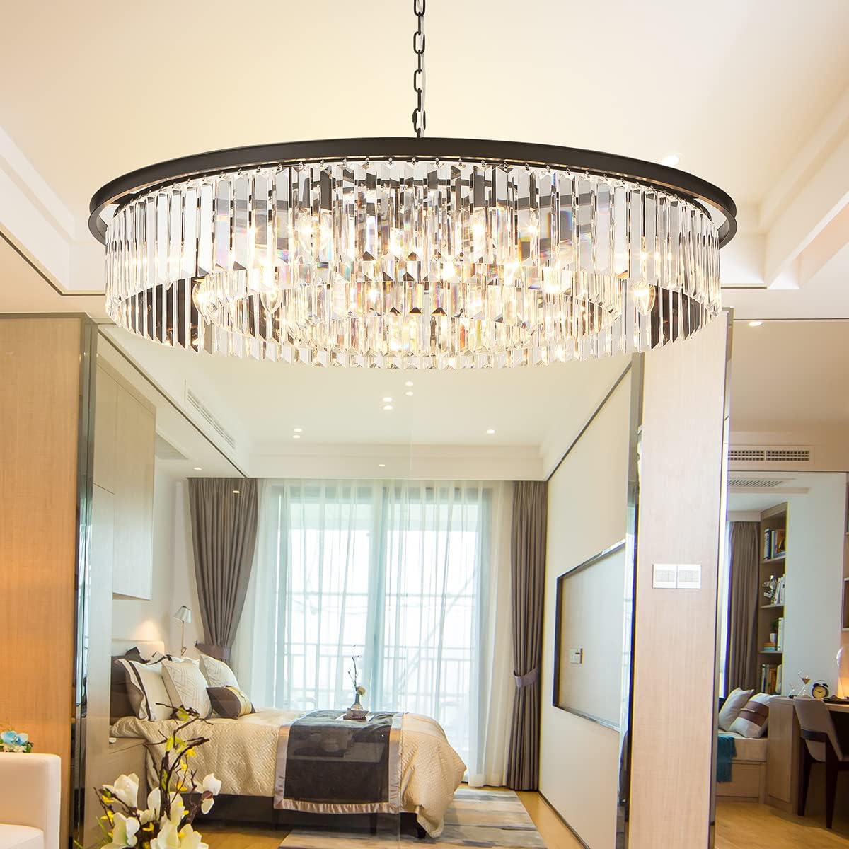 ►A all-matching piece ►Easy to install ►Well fit wall dimmer switch ►Great for round table/space, but also rectangle table ►Adjustable Chain well fit sloped, high ceiling, pretty low ceiling ►Brings new life to any background ►Selected Clear Crystals ►Include Gift Bulbs ►10-year manufacture experience team support ► Strict quality test► Boutique Crystals ● All Lt-vt chandeliers all used real crystals instead of acrylics or plastic. ● The best way to distinguish between Crystals and Acrylics is to burn it, we insist on using selected crystals ● Its sparkling crystal and high strength matt black metal frame add up to winning combination and will make a sleek addition to a contemporary or vintage interior ► Crystal Chandelier● Lt-vt has been committed to creating high-end first-class lamps since its inception. We believe everyone should add some aesthetics comf feeling at home. We hope that through these exquisite and atmospheric lamps, customers will know our philosophy. ●This Lt-vt Modern chandelier features hanging crystal accents that make a big statement for Dining Living Room Kitchen Island Bedroom Foyer Hallway. Its frame is made from metal in Oil Black finish. The frame showcases gleaming faceted crystals that reflect light all around your space. Inside the frame, it accommodates candelabra-style bulbs. Plus, this chandelier works with a dimmer switch, so you can adjust the lighting from breakfast to dinner.With its sophisticated beauty and stunning details, it is sure to add the perfect touch to your decor. 💡Warm Tips: ✨ Please make sure the light is securely supported and is disconnected from power when installing. ✨ Installing the light bulbs before hanging the crystals makes the installation easier.