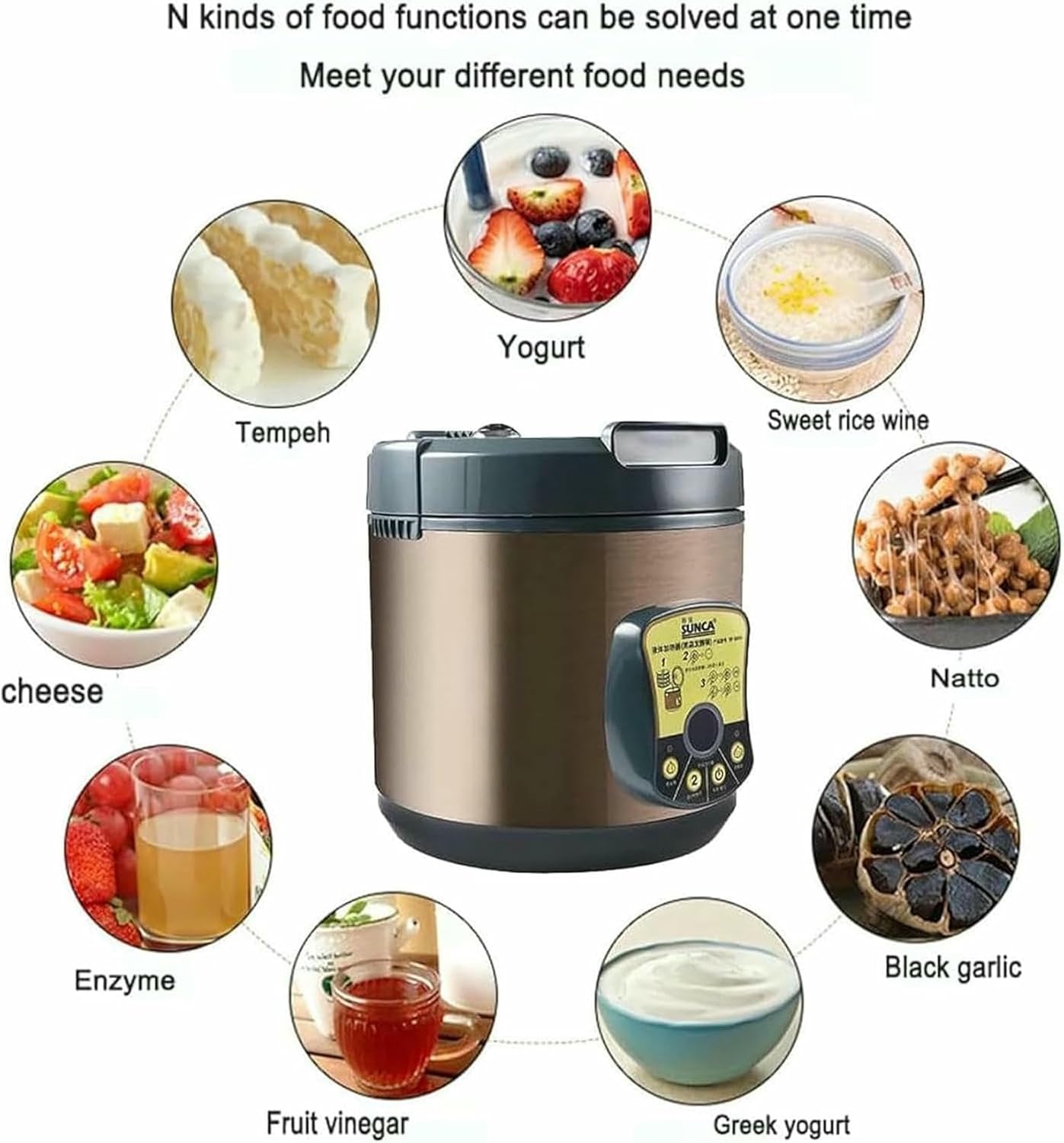 Manufacturer:If you are looking for a reliable and efficient way to make perfect fermented garlic, then the Black Garlic Fermenter Machine is definitely the machine for you. It is durable, hygienic, and easy to use, making it a must-have kitchen appliance for every home. So go ahead and purchase this amazing machine today and enjoy the benefits of homemade black garlic and other fermented foods.Product Parameters: Power: 90W Operating ambient temperature: 0°C to 45°C Ambient air relative humidity: less than 90% Volume: 6.0L Optional modes: [Multi-clove garlic] Fermentation for 8 days [Single head] Fermentation for 12 days [Baking] 2 hours Automatic temperature control: 1-3 days about 72-93°C/5-12 days about 62-82°C Power cord length: 110cm Size: 28*28*29cm Net weight/gross weight: 2467g/3657gPackage Includes: 1 * Black Garlic Fermenter 1 * ManualHow to Use: 1. Fresh raw garlic or single garlic, no need to peel or clean. 2. Cut off the excess garlic stalks, place the garlic in a stainless steel cage and lay it flat, shake it well, and place the garlic evenly. 3. Turn on the power to select multi-clove garlic/single garlic fermentation function 4. After 8 to 12 days of fermentation, you can eat black garlic. If garlic still contains a lot of water, it can be dried again.