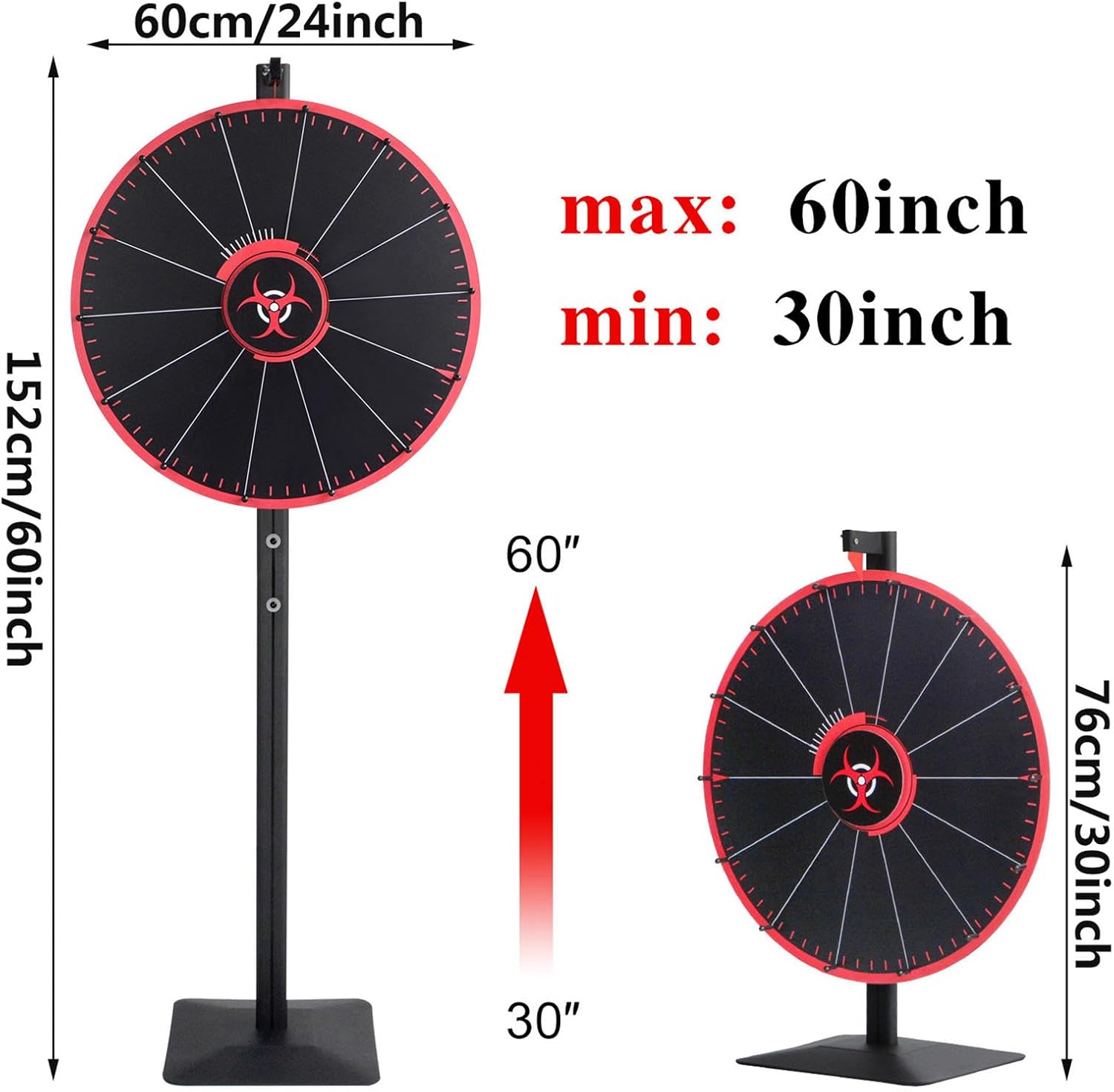 This tabletop spin bonus wheel is a great way to grab people's attention. It can be used to encourage and improve the morale of the game organized by the company. It also applies to your business activities. 14 custom grids for easy writing or erasing. Reusable multiple times. All items included: Prize Wheel, Stand, Dry Erase Marker, Eraser. Put a divider between each segment for better speed control and a "click" as it spins to increase excitement and draw crowds. This prize wheel is perfect for festivals, trade shows, carnivals, annual meetings, parties, corporate events, restaurants and more. Product parameters: Material: ABS, Metal Roulette diameter: 60cm/24inch; Max height: 152cm/60inch; Min height: 76cm/30inch; Note: There are only two levels of height, which cannot be adjusted. If you have any questions, please write to us and we will reply to you within 12 hours and help you solve the problem.