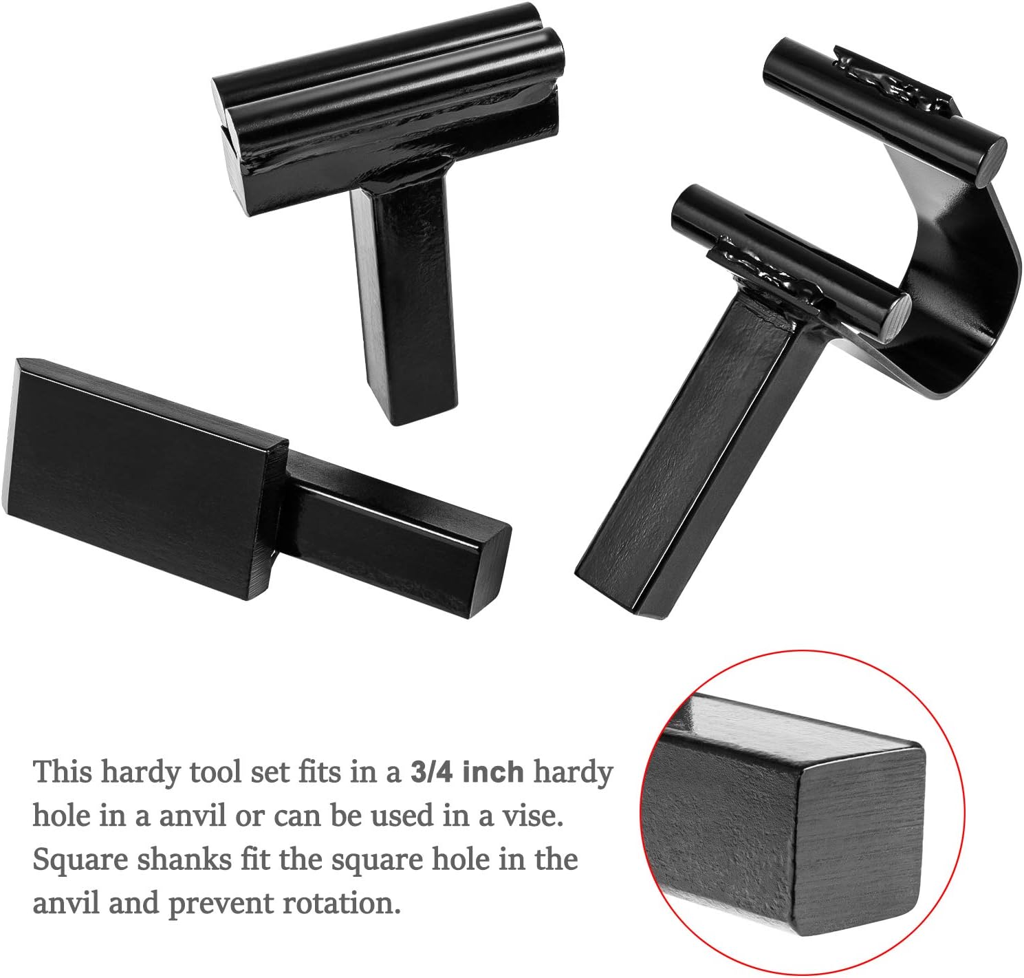 Application: Fits in a 3/4 inch hardy hole in a anvil or can be used in a vise.Package Includes:1 x Hot Cut Hardy Tool1 x Creasing Stake Forge Anvil Tool1 x Blacksmith Anvil Spring Fuller Tool