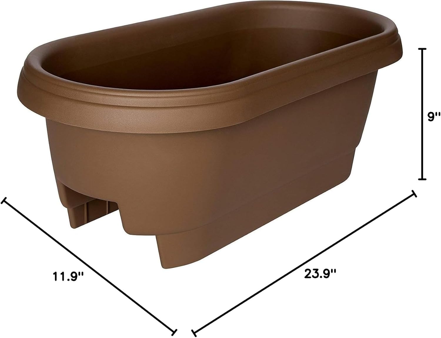 Bloem offers to do pots, planters, and other home and garden items better! This Oval Rail Planter features an oval shaped planter that can sit perfectly on any deck or balcony railing. This has drainage holes on the bottom to help get rid of any extra water with a removeable saucer. Being lightweight makes it easy to move around and transport. The unique and decorative rich chocolate color planter makes it a perfect fit for any home.