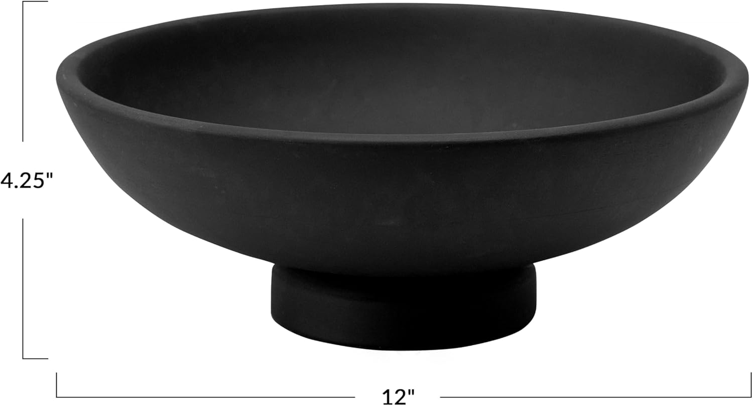 This footed bowl works great for display or serving purposes. Made out of mango wood and featuring a sleek black color, this modern bowl looks great on countertops. Perfect for storing fresh fruits or snacks, or for serving friends and family in style. Measures 12" Round x 4-1/2"H.