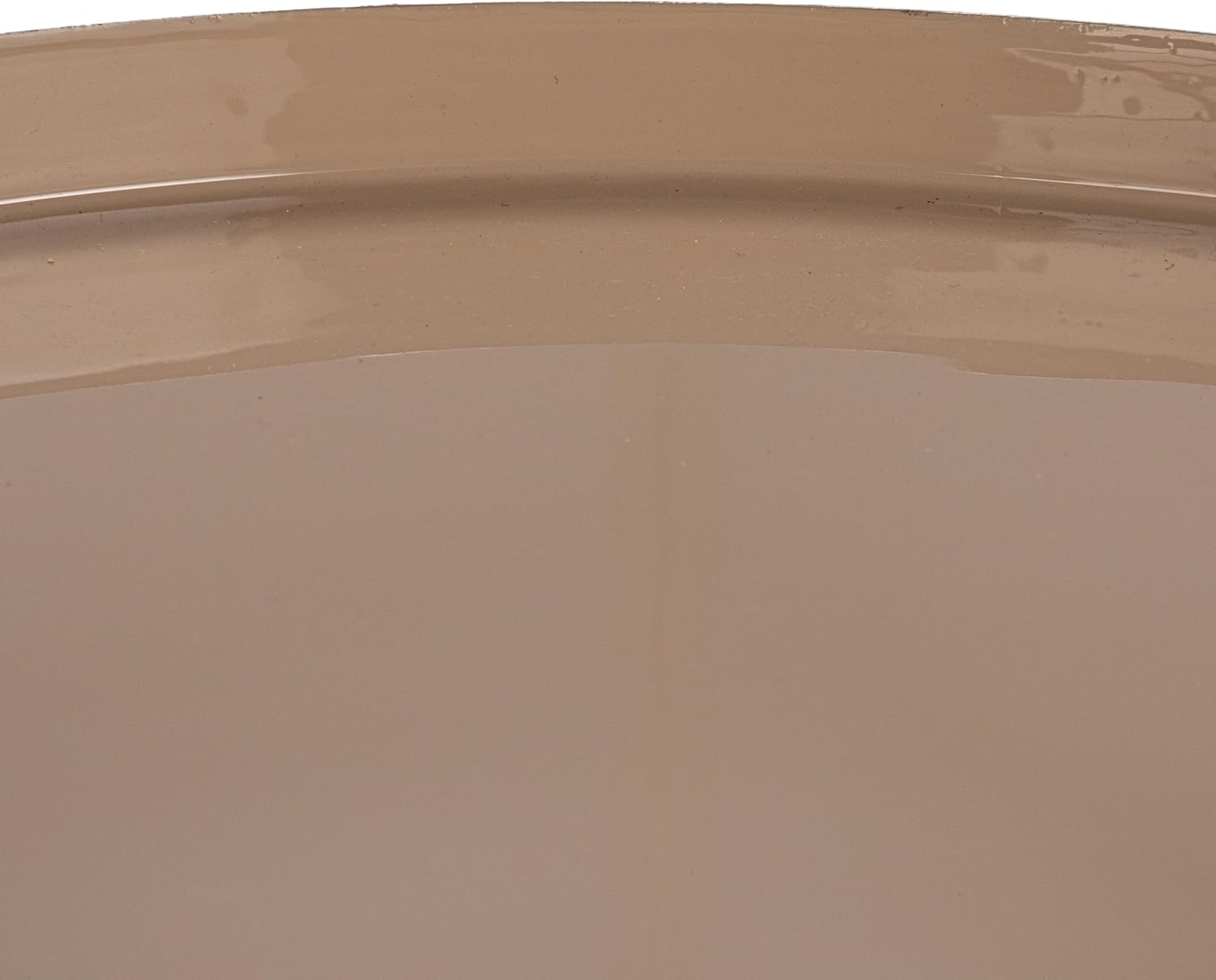 This taupe and gold enameled metal tray table is a beautiful and functional piece that will enhance the home. It features a taupe and gold enameled metal design that creates a shiny and smooth finish. The table has a round shape and a flat surface that make it easy to place and display. The table also has a tray top that can be lifted and carried easily. The table can be used to place drinks, books, lamps, or other items, or to serve snacks, appetizers, or desserts. The table is perfect for adding some elegance and convenience to the living room, bedroom, or any other space. The table comes partially assembled and made of high-quality and durable metal material that is easy to clean and care for. This taupe and gold enameled metal tray table is an excellent choice for self-care or special occasions.