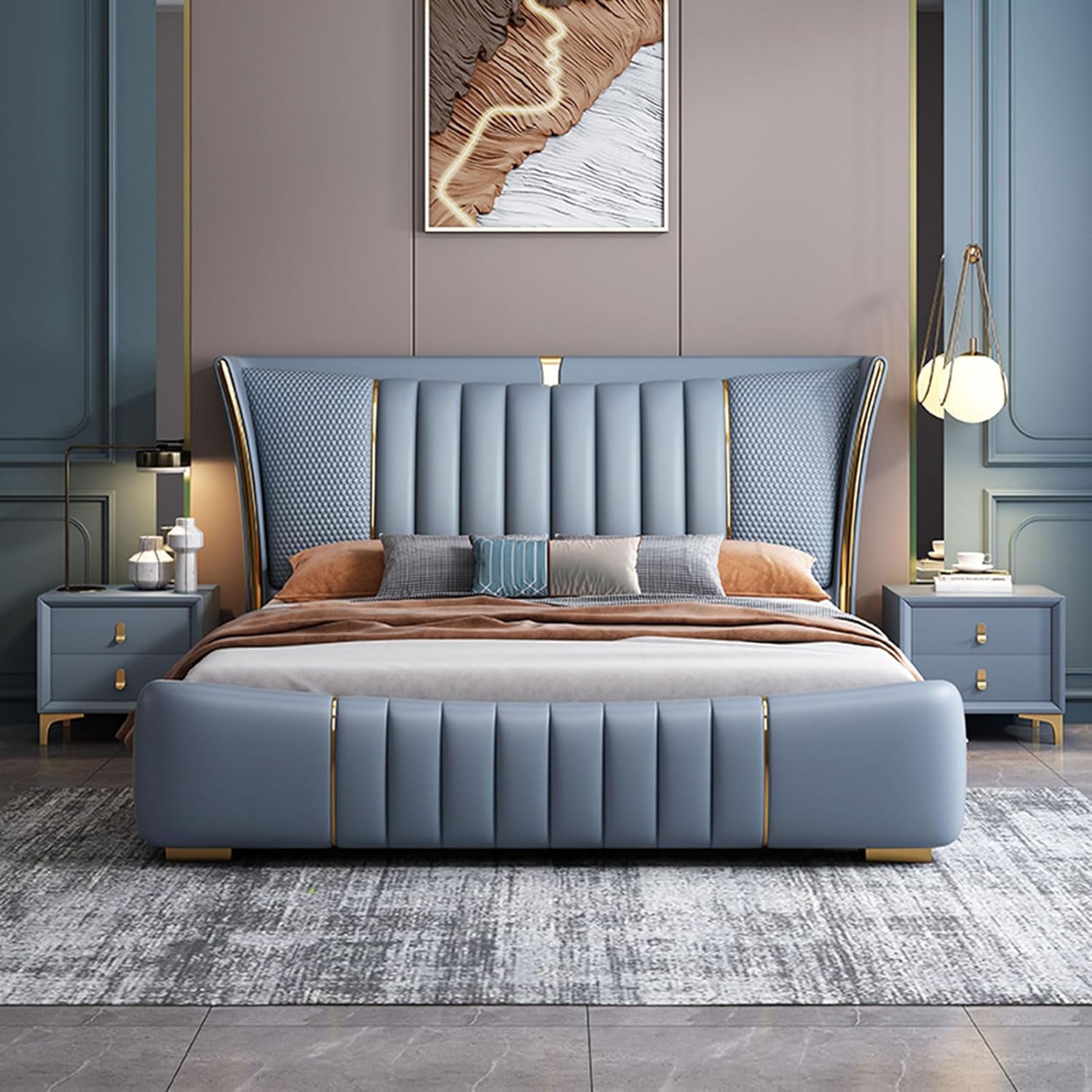 This bed frame features elegant design and maximum comfort that can be adjusted to the height you need. Allow you to use different thickness mattress to cater to your individual needs. Perfect for you to lean on.Material: LeatherMax. user weight 400 LBSBox spring required: NOAssembly required: YESSize: 1.8m X 2mPackage includes:Bed x 1 (No Box Spring Needed )Quantity of package x 1