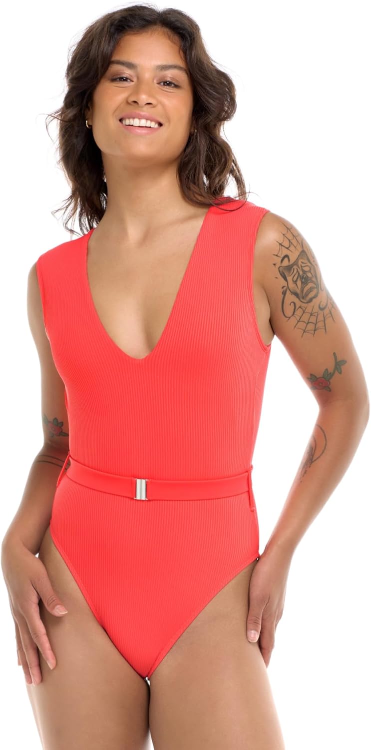 Step into luxury with the Ezry – the epitome of class and style. Featuring a built-in shelf bra and removable soft cups, it provides the perfect blend of support and elegance. The ribbed fabric adds a touch of texture, while the V-neck and decorative belt exude sophistication. With cap sleeves and cheeky coverage, this swimsuit is your ticket to making a grand entrance at any beach soirée. Elevate your swimwear collection today and shop the Body Glove store at Amazon for more stylish options!