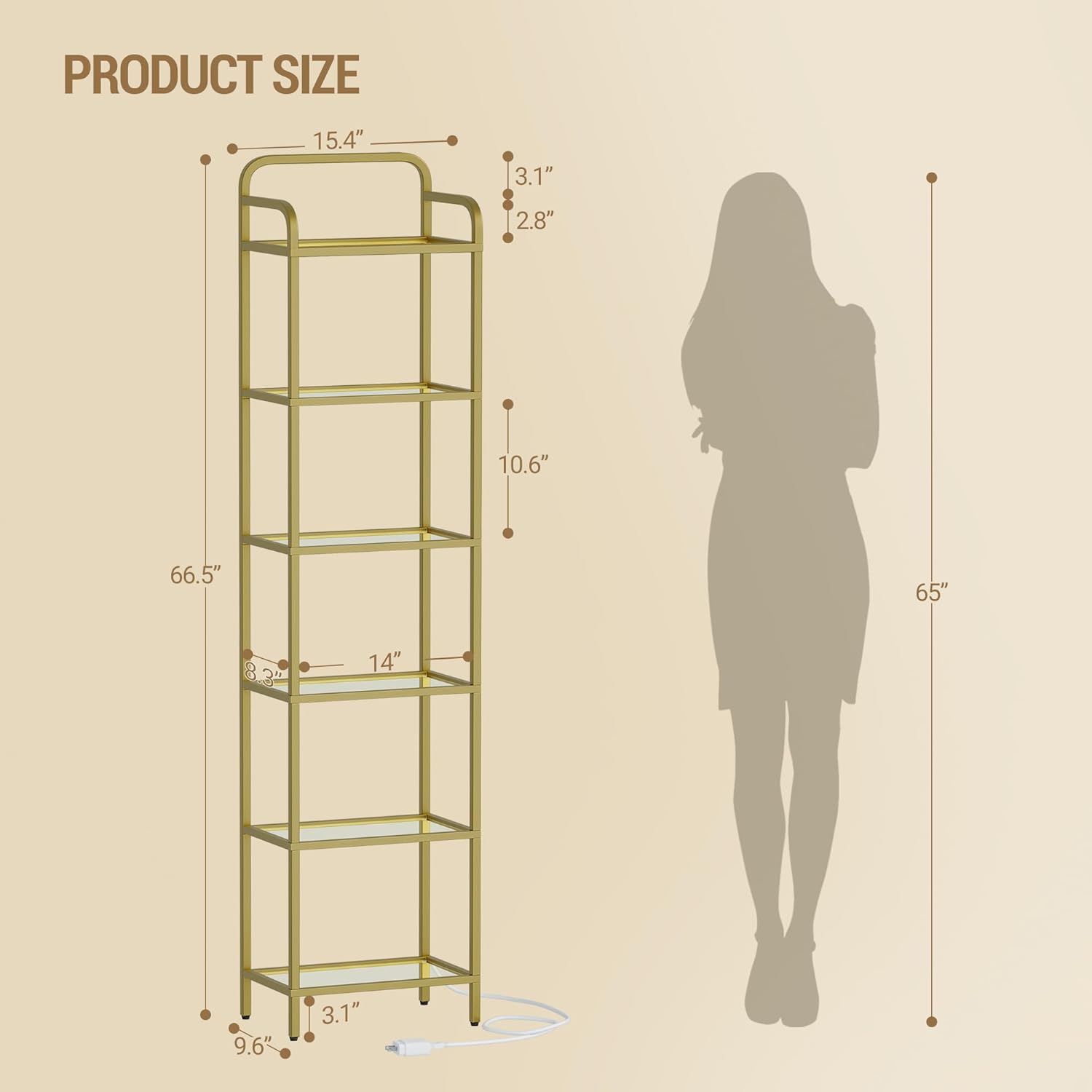| Size | 9.6"D x 15.4"W x 66.5"H |