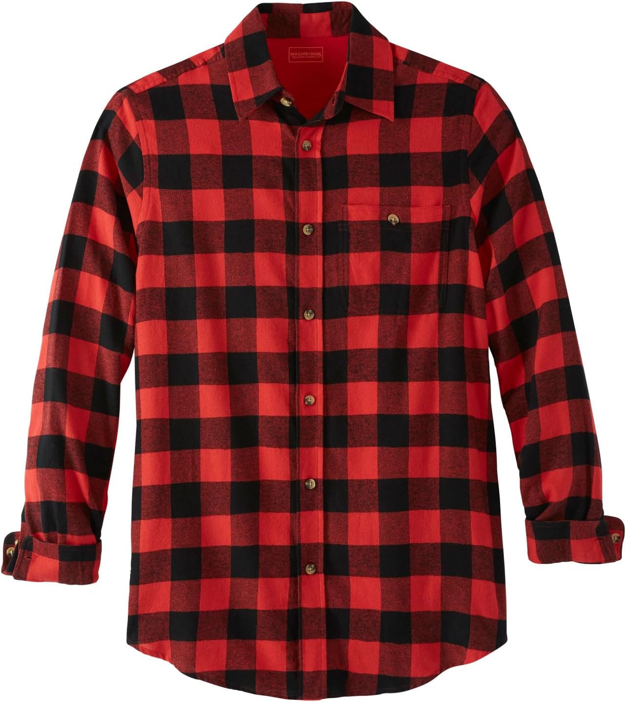 Our Boulder Creek Flannel Shirts are an easy, everyday option to layer over a long sleeve tee or henley or worn buttoned on their own. It's made from breathable 100% cotton and has a relaxed fit for total comfort and mobility.Relaxed fitbr>Button frontbr>Button chest pocketbr>Adjustable cuffsbr>Box pleat back for extra movementbr>Big length approx. 34"; Tall length approx. 36"br>Double brushed flannelbr>100% cottonbr>Machine washbr>Imported