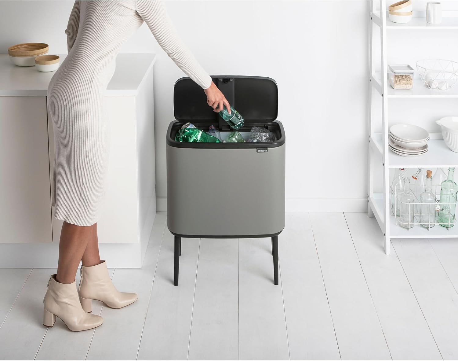 Looking for a waste solution that matches your style? This Brabantia Bo Touch Trash Can combines a beautiful design with 9.5 gallons of capacity. It is designed with love for your home and care for our planet. This space-saving can fits perfectly against a wall, and is very stable, thanks to the adjustable non-skid legs. Its unique soft-touch opening makes for easy and light operation at the touch of your hand. Go Bo!