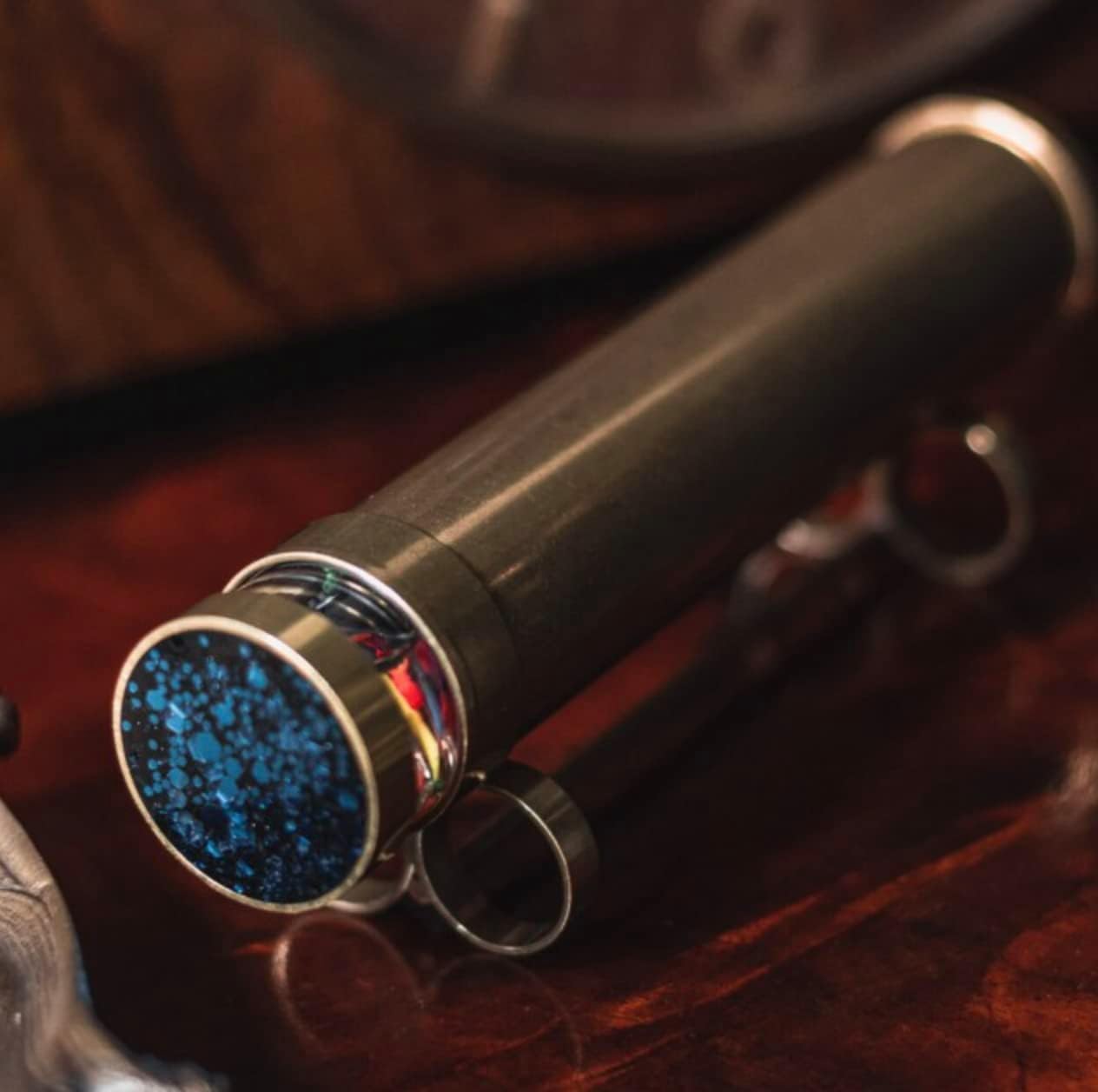 Lovingly crafted in Israel by Roy Cohen. These exquisite handmade brass Kaleidoscopes are made using techniques originating from the invention of the kaleidoscope in 1817. One end consists of two mirrors and a closed section containing glass shards, beads and other reflective objects, which move and drop within the void when the barrel is turned. The result is at every moment a beautiful image is created by light entering from the side. The view from each piece is unique and will vary from the photos shown. For the best results use this under sun or house lights to see optimal reflections. Each Kaleidoscope is packaged in a gift box and can be displayed with the gold brass standard which accompanies it.
