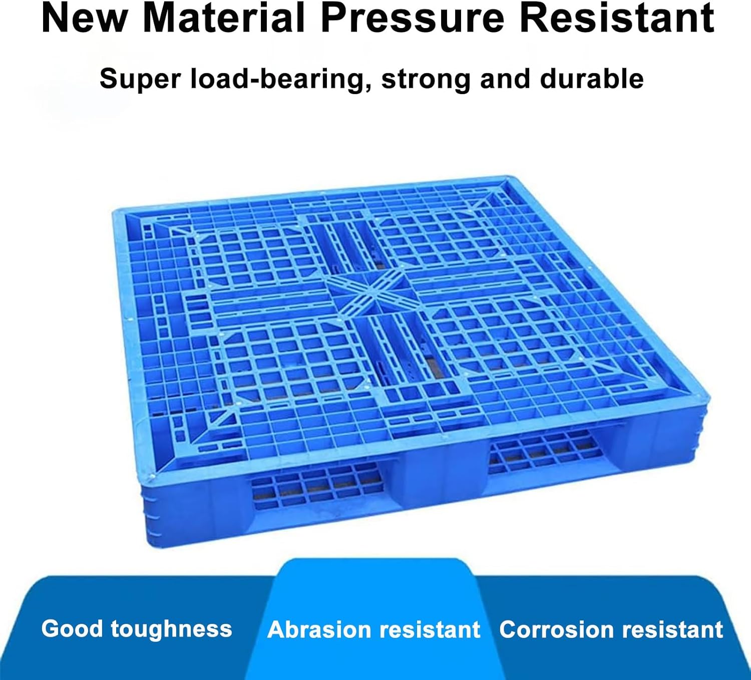 Made from Polyethylene in a striking, this pallet sturdy construction combined with ventilated grids ensures moisture resistance and airflow, suitable for various storage settings. The pallet supports four-way forklift entry for easy handling. Ideal for warehouses, supermarkets, basements, and outdoor use, it enhances storage efficiency and protects your itemsSpecifications: Material: High-density PolyethyleneColor: Black , BlueDimensions: 43.3x43.3in/110x110cm , 47.2x39.3in/120x100cm, high load capacityFeatures: Sturdy construction with grid design for ventilation and moisture resistance. Supports four-way forklift entry for easy handling. Ideal for warehouses, supermarkets, basements, and outdoor use, enhancing storage efficiency and protecting stored items