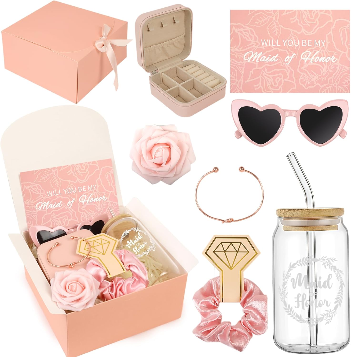 | Included Components | Gift Box, Ribbon, Jewelry Box, Glass Cup, Knotted Bracelet, Sunglasses, Scrunchie, Invitation Card, Raffia Grass |