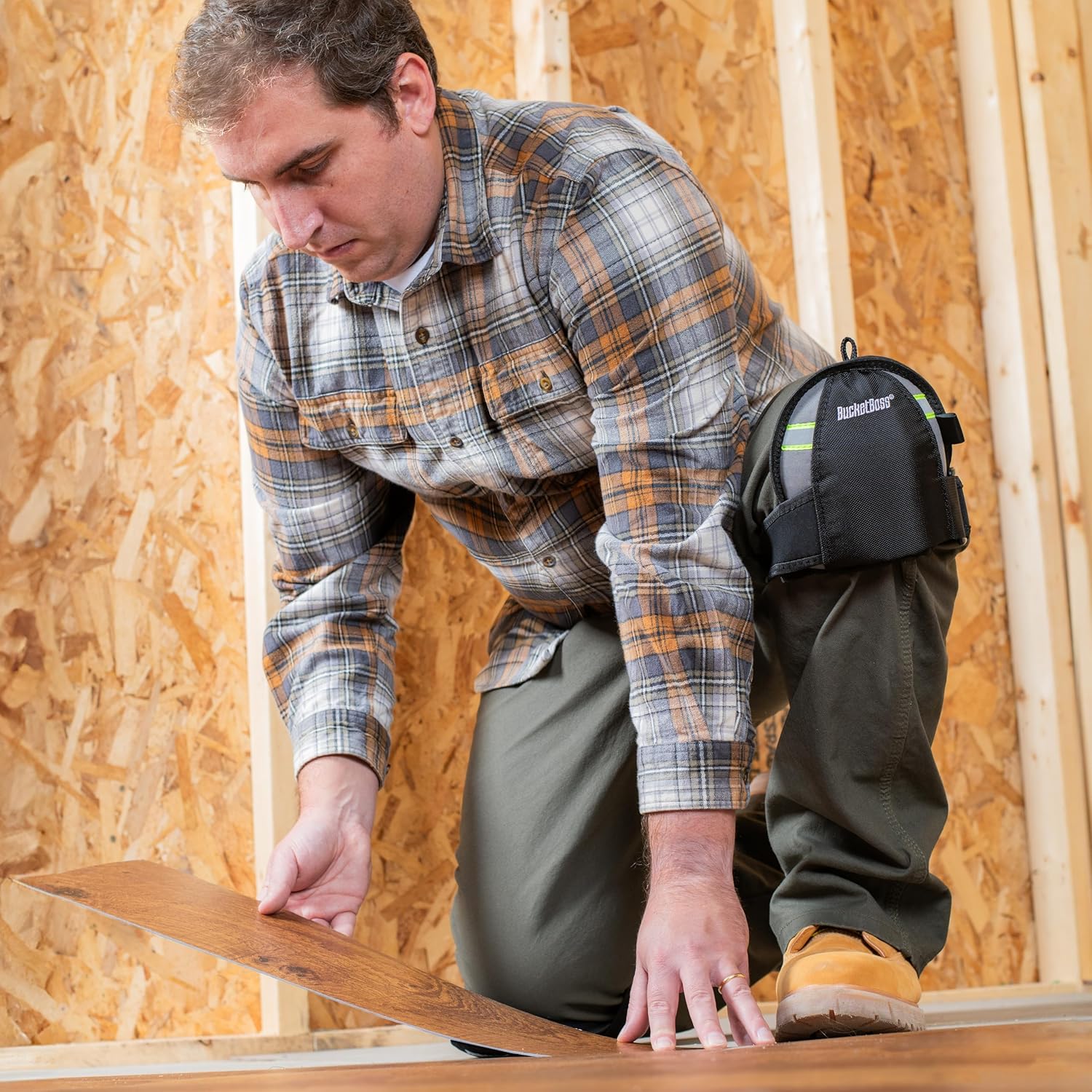Product Description From the KneeKeeperHV Series, the latest and highest level Bucket Boss knee pads. All of the KneeKeeper High Visibility knee pads feature 3M Scotchlite Reflective that meets ANSI and EN1150 Retro-Reflective worldwide standards for high-visibility jobsite safety. The GX4 Megasoft flooring knee pad is a lightweight, compact kneepad made from a hybrid gel-foam, providing for a new level of comfort that will make you forget you are wearing kneepads. This flooring knee pad features a fabric surface ideal for non-marring flooring applications, but also a great all-around kneepad for general protection. Durable neoprene lining provides superior comfort. The wrap-style strap is adjustable, with a neoprene strap and hook and loop closure. These flooring knee pads are sure to get the job done with their light fabric cap that is strong enough to withstand pro-level use. Item Dimensions (per flooring knee pad) L x W x H: 4.5 in. x 8 in. x 7 in. Today, Bucket Boss carries over 100 different products that organize and hold tools in the strongest, most efficient ways. For 30 years, we have prided ourselves in creating durable products that can withstand many years of wear and tear. We strive to stay ahead of the pack by constantly upgrading features and using the best quality materials on the market to create the best product for our end users. Manufacturer Contact Information Pull'R Holding Company, LLC