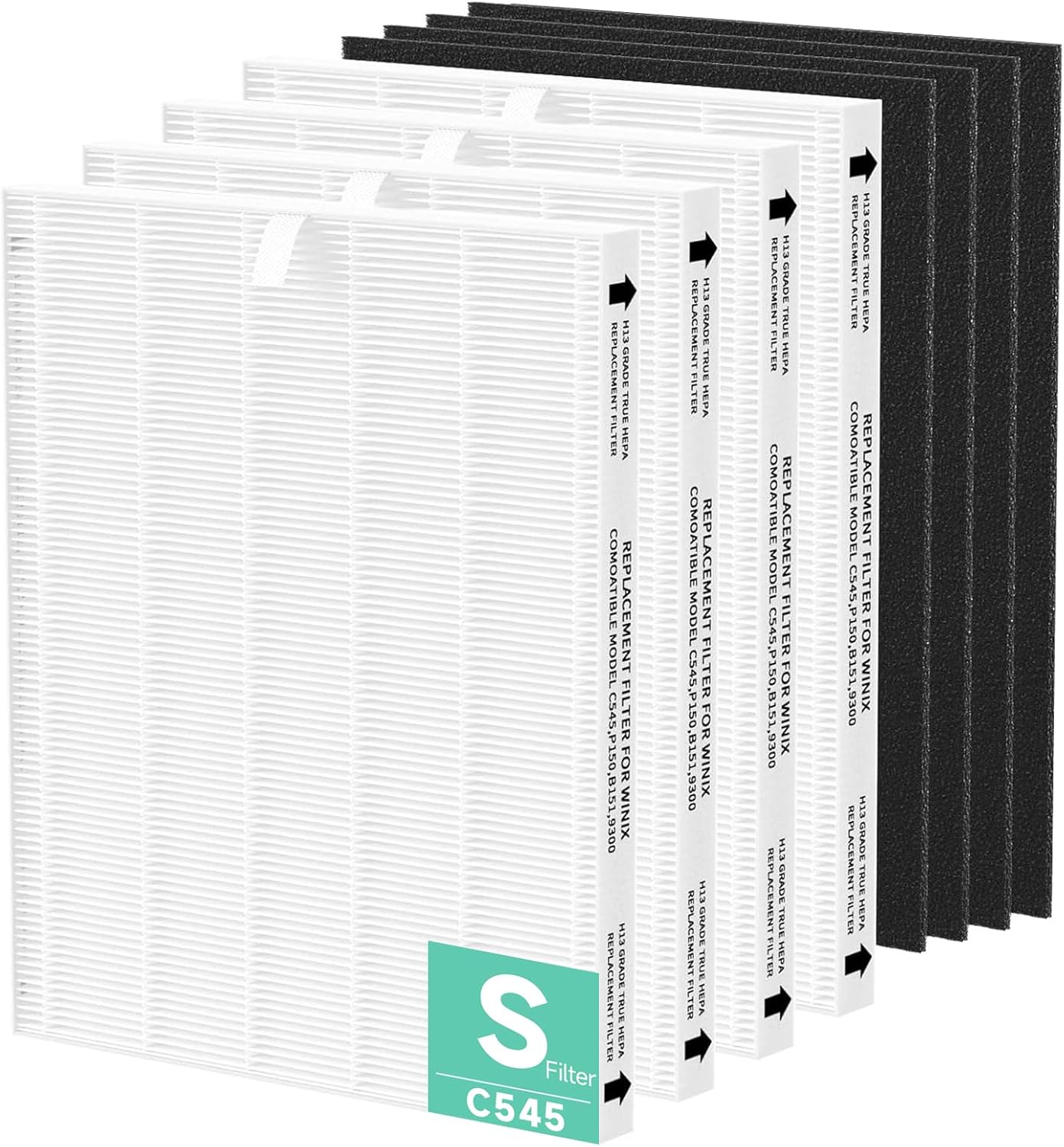 C545 Replacement Filter Compatible with Winix C545 Purifier, HPEA Filter S, Part Number 1712-0096-00, 3×Filters + 6×Activated Carbon Pre-Filters