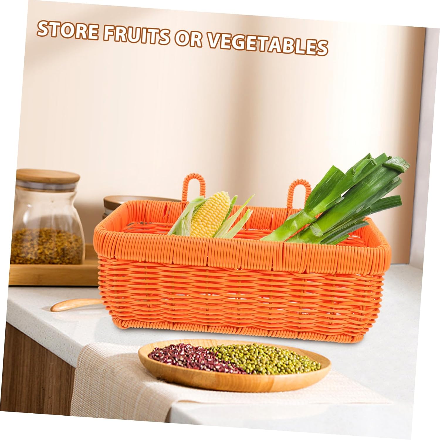 Package Include 3 x woven basket Features -Size:28.00X16.00X13.00cm/11.00X6.29X5.11in woven storage baskets -Color:Orange woven sundries basket - Sturdy construction: Made of sturdy materials to use. Can put flowers in this hanging basket. kitchen storage holder - Stylish design: Woven design of this wall hanging storage basket adds a touch of style to your home decor wall hanging baskets. -Material:Plastic small hanging basket - Versatile: This wall storage basket is for storing garlic, ginger, fruits, vegetables, flowers and more wall baskets. - Space-saving: Can be hung on the wall to save space in your kitchen or garden Simply clean with a damp cloth hanging fruit basket. - Excellent woven craft make this basket simple in look but very practical in use, give you a pleasant using experience. hanging basket for kitchenGoods Informationlarge woven baskets for storage Are you still looking for a wall hanging storage basket? This hanging woven basket is the choice for you.hanging vegetable basket Woven basket with fine details and good workmanship helps you contain what you need and makes your life becomes more refined and tasteful.hanging wall basket It fits most decor styles such modern farmhouse, rural style, etc
