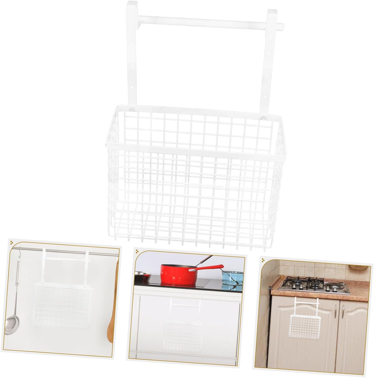 Package List 1 x Over Cabinet Door Organizer Features -Robust durability: constructed from stainless steel, offering robust durability and easy cleaning, suitable for everyday use wall grid basket -Sleek design: modern and sleek design that matches a variety of home decor styles, adding a touch of elegance to your space grid storage basket -Versatile use: versatile design allows use in multiple areas such as kitchens and bathrooms, providing flexible storage options wire baskets for kitchen cupboards -Material:Iron wall storage basket -Color:White wall hanging storage -Easy access: features a towel bar or towel holder, ideal for hanging towels or other small essentials within kitchen basket for pantry -Size:38.02X27.94X11.99cm/14.94X10.98X4.71in pantry storage baskets -Space-saving: spacesaving wallmounted design offers convenient storage, helping to keep your area tidy and organized bathroom under sink organizerGoods Informationover the cabinet door basket Transform your kitchen or bathroom with this hanging kitchen basket.grid wall storage The minimalist design ensures it blends seamlessly with any interior, providing both functionality and style.kitchen storage organizer The wall-mounted organizer offers a way to store cutting boards, towels, and other essentials.wire basket shelving Crafted from stainless steel, it is both and easy to clean