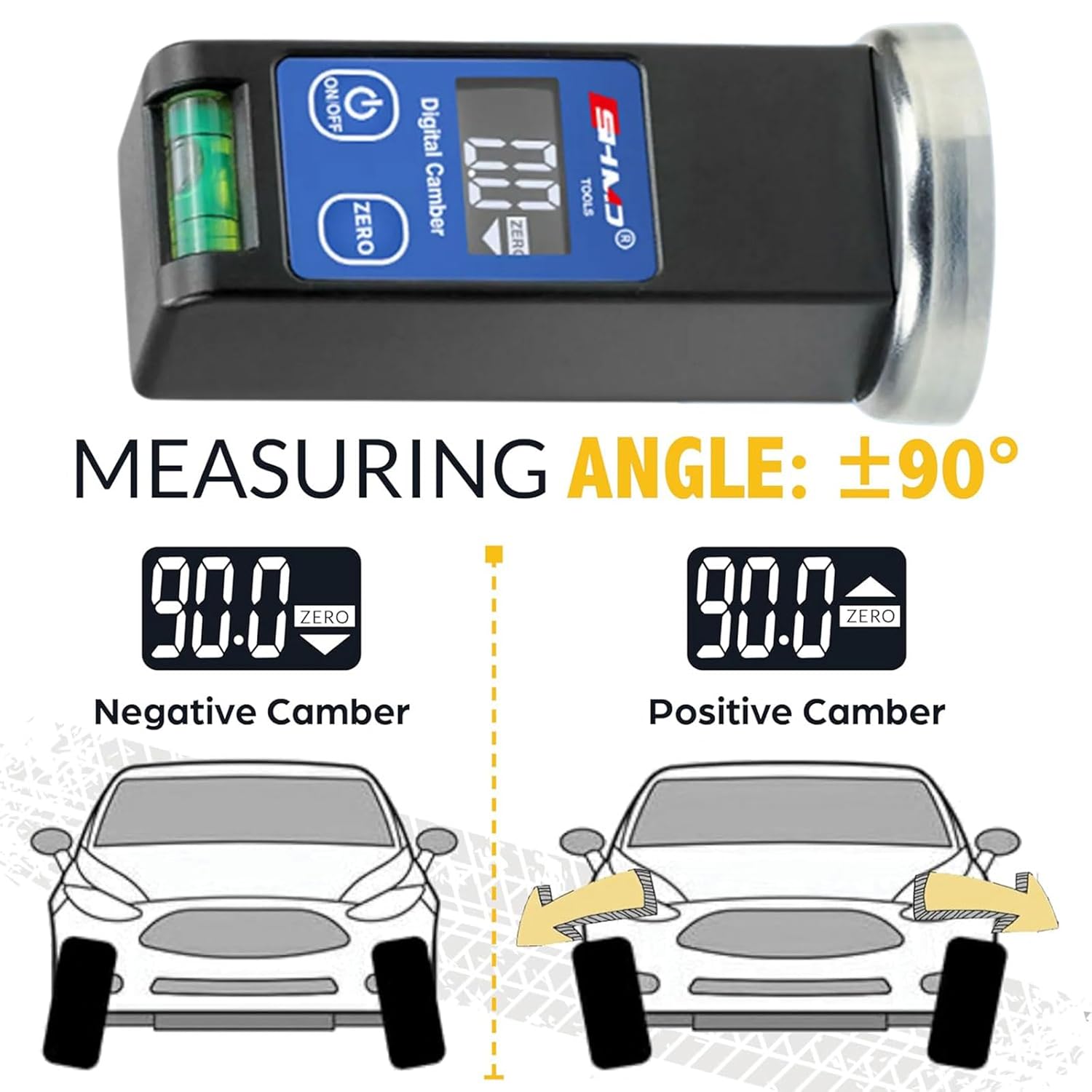 Cambers Gauge For Car Truck SUV LCD Display Wheel Alignment Tool Digital Cambers Alignment Tool With Horizontal BubbleFeatures:Achieve profession grade precisions in wheel alignment with our Digital Cambers Alignment Tool, featuring a LCD display for clear, accurate readings.This Cambers gauge boasts a construction with a base, ensuring stability and ease of use on all types of vehicles.For automotive technicians, car enthusiasts, and team look for a tool to maintain wheel alignment.Whether in the garage or at the racetrack, this alignment tool is for quick adjustments and routine maintenance.Enhances your vehicle's performances and ensures a ride by using our Wheel Alignment Tool, a must accessory for any car maintenance toolkit.Specifications:Component: MetalSize: About. 4.5x2.5x9cm/1.77x0.98x3.54inPackage Includes:1pc Cambers Alignment ToolNote:Please allow 1-2cm errors due to manual measurement. Due to difference between different monitors, the picture may not reflect the item actual color.
