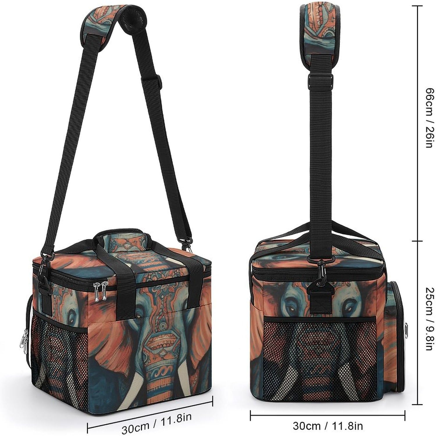 Versatile design: The Abstract Elephant print travel cooler bag stylish, gender-neutral design is suitable for all ages and occasions, whether for work, gym, outdoor events, or travel.Perfect for every occasion: This insulated food bag is not just for camping, rugged cooler bag is an excellent choice for everyday use, such as meal prep, lunch at work, grocery shopping, and more.Space-Saving design: The stand-up structure of the outdoor lifestyle bag saves space and makes it easy to store when not in use, insulated grocery bag perfect for compact packing.Machine washable: The reusable lunch bag is easy to maintain, food organizer bag is washable, but avoid prolonged soaking or bleaching to preserve its quality.