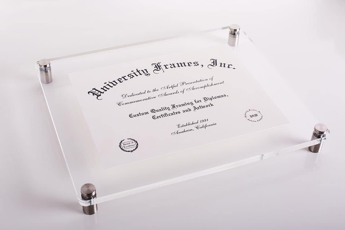 This frame is perfect for those looking to add a modern look to their office or home. Lucent Clear Moulding with Lucent Clear primary mat. White Foil seal and imprinted school name.