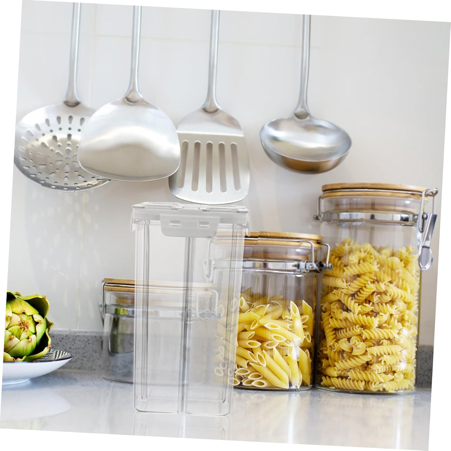 Package Include 1 x food storage box Features -Airtight seal: the container's lid is designed to create an airtight seal, locking in freshness and preventing moisture from spoiling your food sugar container -Clear visibility: the transparent design allows you to easily see the contents inside, making it simple to monitor your food supply and plan your grocery shopping cereal storage containers with lids airtight -Foursection storage: this container's four compartments are ideal for separating different of grains and snacks, ensuring they stay fresh cereal storage -Safe: crafted from plastic, this container is safe for storing all of food, providing peace of mind for you and your family spaghetti container storage -Size:24.50X13.50X13.50cm/9.63X5.31X5.31in pantry storage container -Efficient space utilization: the square shape of the container is Suit for optimizing storage space in your kitchen, allowing you to store more items in less space cereal container -Color:Transparent pasta container -Material:Plastic rice containerGoods Informationpasta storage containers The airtight lid that your food stays fresh and from moisture.snack storage containers Made from plastic, it is safe for storing all of dry foods, including snacks, grains, and more.large cereal containers storage This versatile storage container is designed to keep your pantry neat and organized.pantry organizer The clear design lets you quickly identify the contents, while the four separate compartments allow for easy organization