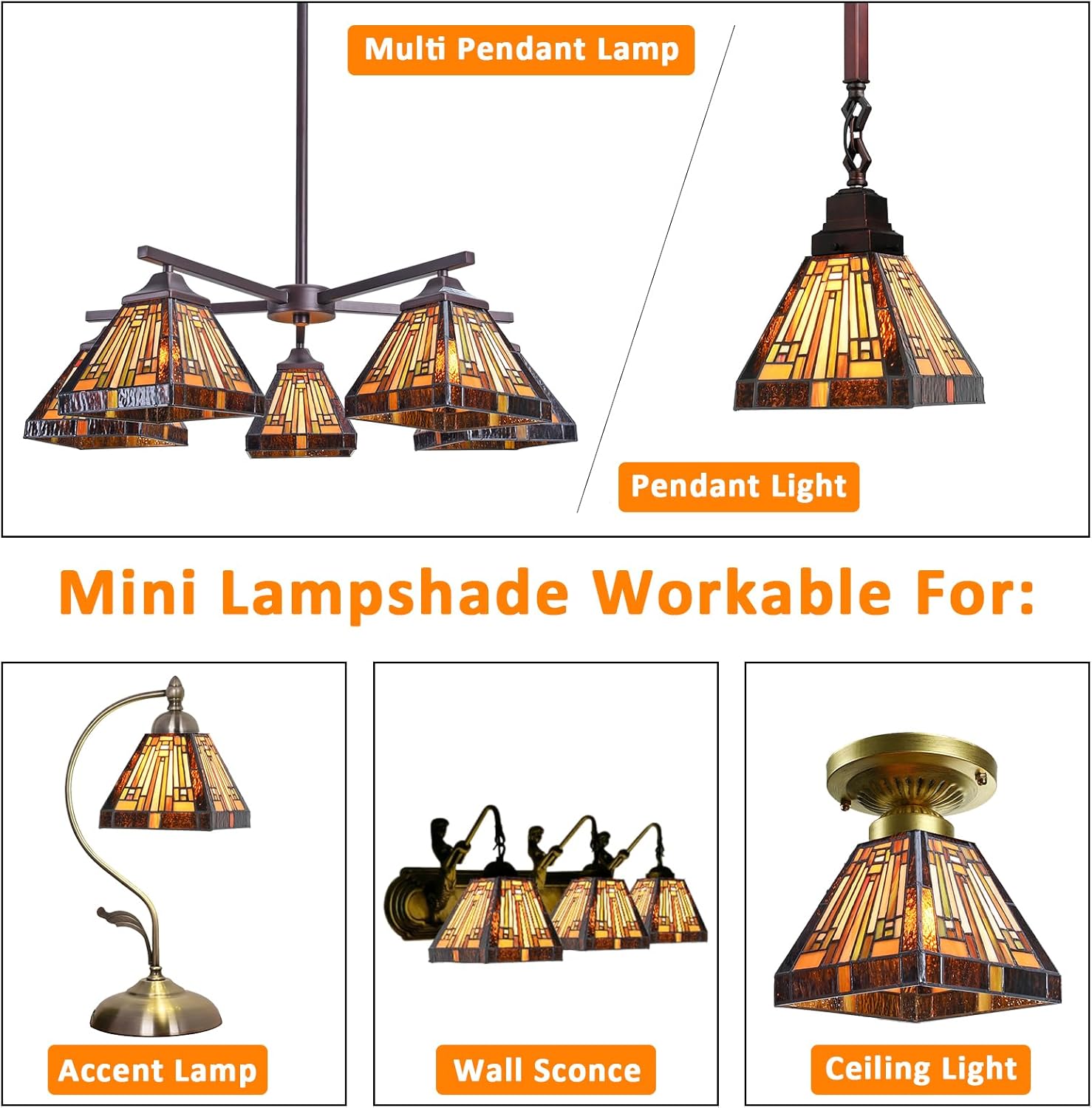 Capulina Tiffany Lamp Shade 7 Inches Wide Stained Glass Hanging Light Chandelier Lampshade Mission Classical Antique Style