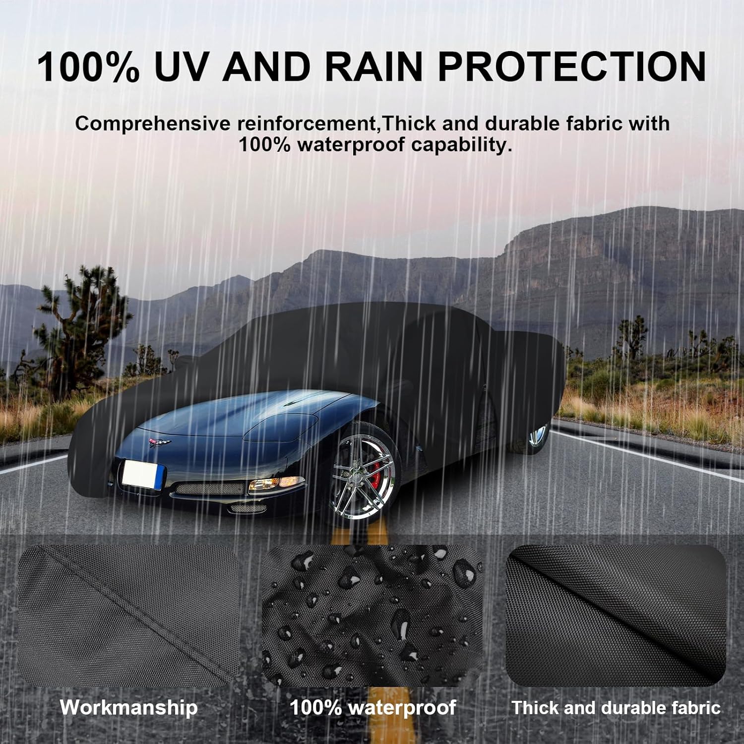 Car Cover Custom Fit for Chevrolet Corvette C6 (2005–2013) Coupe Convertible Targa,600D Waterproof Heavy Duty 7 Layers Car Cover,Outdoor Full Cover Rain Sun UV Protection with Door Zipper, Black (C6)