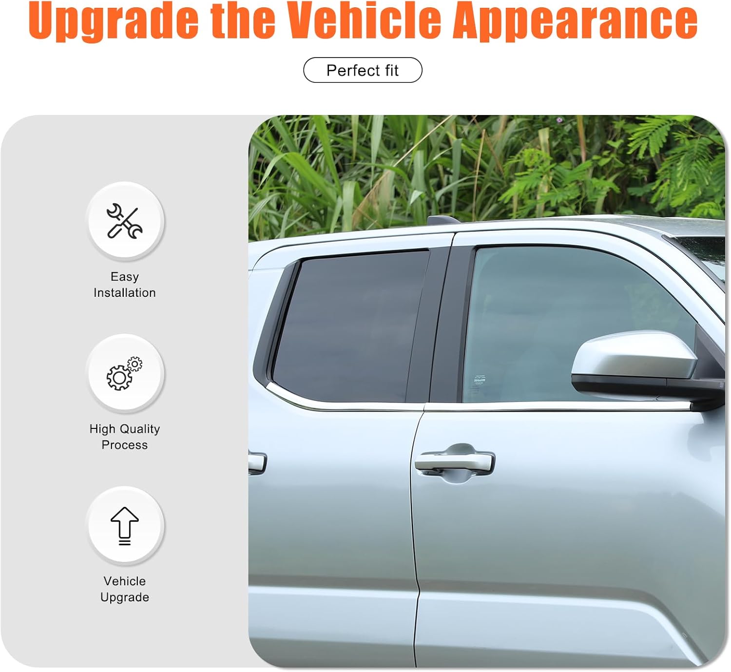 Daeiclru focuses on designing and producing professional, safe, high-quality, cost-effective auto accessories, our goal is to make your vehicle more secure, different and out standing in the crowd. And provide you with fast pre-sales and after-sales service.📌Item Description:Fitment: Fit for Toyota Tacoma 2024-2025Condition: 100% Brand NewMaterial: High quality of ABS plastic✨Product Features:☑The unique design adds a cool style to your car. Decorate your car and make it special.☑Cover scratches and dirt, effectively protect your car door window edge from scratches and scuffs.☑Does not affect any function usage.☑Easy to install without any tools.🎁Package Include:4pc/set of Car Window Moulding Trim Cover💡About Installation:1. Using alcohol, clean installation location surface and keep it dry without water and dust.2. It is best to heating the tape with hair dryer or baking gun, then tear off the double-sided tape behind it and stick it to the corresponding position.3. Press firmly for a minute or so to better secure the accessories in place.📢Attention:Because of vehicle version's difference in different region, we can't 100% guarantee it fit for your car, so please refer to our pictures first and check your car model, thank you.If the product has a size problem or is defective, please contact us in time, and we will deal with the after-sales problem for you as soon as possible.
