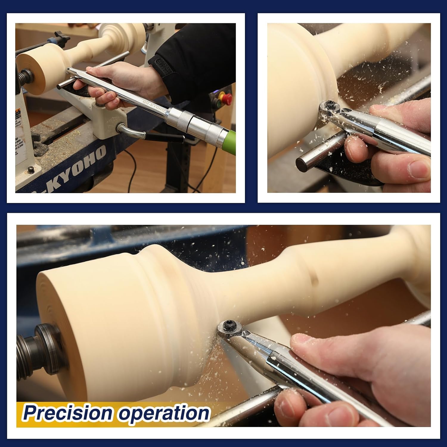 • Pro-Grade 3-in-1 Carbide System: Features Diamond, Round & Square cutters, all with a precision 8°angle for cleaner cuts in detailing, hollowing & roughing. Perfect for wood turning tools for lathe