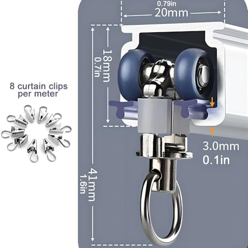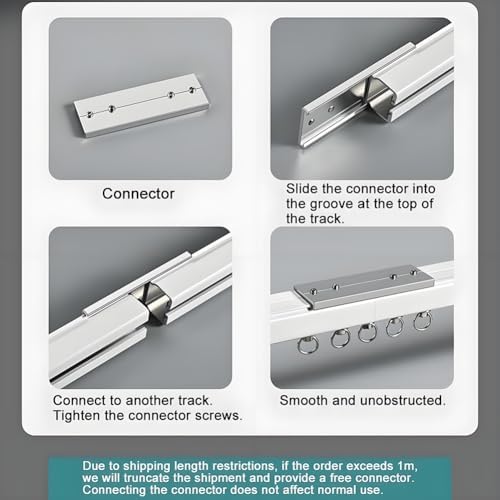 Product name: Extra thick curtain track Color:White Material: Aluminum Alloy Type: Straight track Including accessories: seal 2 pieces/set, bearing pulley 8 pieces/m, installation code 2 pieces/m, Curtain clips 8 pieces/m Installation: top-mounted, side-mounted (comes with both top-mounted and side-mounted accessories) Tips: If the product is longer than 1m, it will be cut for delivery (with rail connector) ✿Tips --1. Due to the problem of too long shipping length, if it exceeds 1 meter, we will provide the connector for free. --2. Due to manual cutting and sewing, please allow a deviation of 1-3cm. --3. There are many sizes for you to choose, and any size can be customized to meet your different needs.