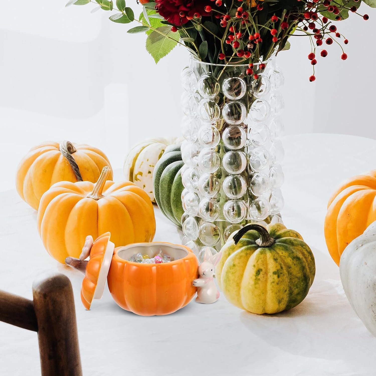 Package Include 1 x ceramic pumpkin jar Characteristics -Product Info: Ceramic Pumpkin Jar -Childroom & party highlight: the playful design engages imaginations, making it an ideal pumpkin desktop decoration or pumpkin treat jar for halloween parties and autumn gatherings pumpkin shape candy jar -Size:17.50X17.00X15.00cm/6.88X6.68X5.89in -Preserves freshness: securely closing ceramic jars with lids keep candies, cookies, and other goodies protected, nice for ceramic tea canister or food container with lid needs in any busy kitchen small sugar jar -Seasonal aesthetic accent: this pumpkin shape ceramic canister adds delightful seasonal flavor to any room, serving as a ceramic storage jar ornament suitable for both festive celebrations and daily decor ceramic food storage jar -Material:Ceramic -Easy upkeep: this porcelain storage jar smooth finish ensures easy cleaning, supporting its role as a kitchen canister or jewelry jar with enduring beauty and practicality pumpkin snack holder -Multipurpose utility: our pumpkin snack container combines the features of a jewelry decorative box and a ceramic snack jar, allowing for inventive storage of both valuables and holiday snacks autumn ceramic pumpkin decoration -Color:YellowGoods Descriptioncandy dish with lid Its tight-fitting lid safeguards food, making this ceramic canister kitchen storage jar ideal not just for snacks but also for organized kitchen canister use.fall festive decor Designed for versatility, this porcelain storage jar easily transitions from a pumpkin sweet jar to a jewelry box decorative item or ceramic storage jar ornament