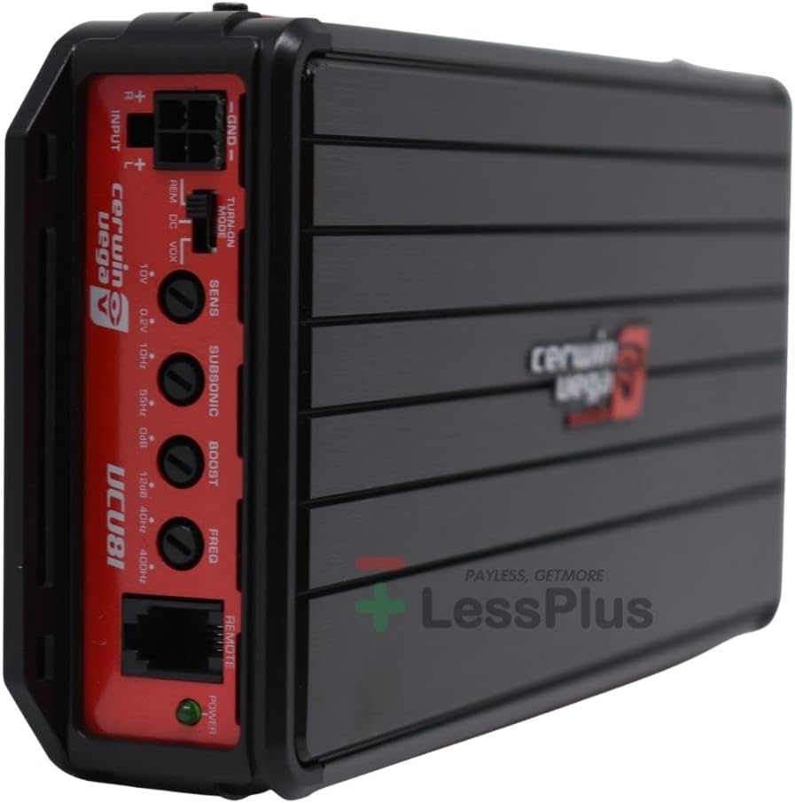 VCU81 – 1-Channel 600W Micro series Digital Amplifier w/ Bass Control KnobVEGA VEGA series amplifiers have been the staple of the Cerwin-Vega Mobile brand. With its VEGA circuit bass remote delivering that signature Cerwin-Vega Mobile sound, VEGA series amplifiers have always been known to be disturbing the peace! It’s sleek and compact design makes installation seamless but don’t let its dimensions fool you as VEGA series amplifiers generate monstrous power output. Conformal-coated circuit boards keeps this amplifier series water resistant and ideal for outdoor weather use.Product Details: Class D Monoblock Amplifier RMS Power Handling: 600W x 1 @ 1 Ohm 400W x 1 @ 2 Ohms 240W x 1 @ 4 Ohms High-Power Full-Range Digital Class D Advanced Technology IR Chipset Surface Mount Component Technology Conformal-Coated IPX Certified 4-Layer Black PCB Remote REM/DC/VOX Turn On Trigger Uniform Heatsink Chassis Compact Universal All-Weather Application Remote Level Control Included