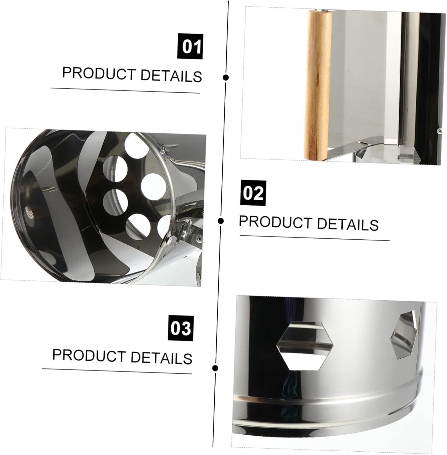 Description This charcoal chimney starter is constructed with galvanized. Large diameter holes at the base for lighting your lighter fluid or newspapers to start the charcoal. The generous ventilation holes on charcoal chimney can canister will the charcoal have excellent air circulation and generation. Features -Color: Assorted color -Material: Stainless steel wooden -Size: 16.5x16.5x27.5cm/6.48x6.48x10.81in - The charcoal chimney starter adopts a - wooden handle and insulation layer to prevent transfer. - Safe, , no peculiar smell to food, tool is faster than the commonly used square starter. - The chimney steel starter is practical and , and has a . The wooden handle is designed to effectively prevent burns. - Ideal for , barbecues, wood , braziers, barbecues, , campfires, pizza ovens. - This easy to use charcoal chimney starter works fast. With the this chimney starter, your coals quickly and evenly. Package Including 1 x Charcoal Chimney Starter