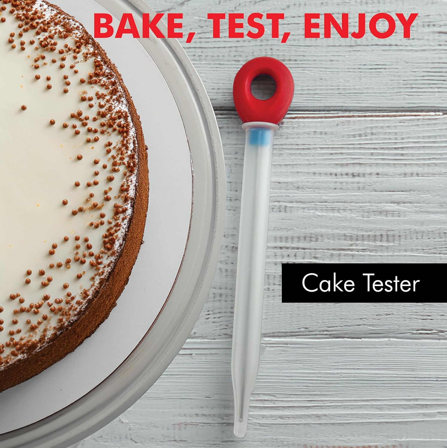 Checking a cake has never been easier with Chef Craft's Cake Tester tool. All you need to do is stick the wire into the center and if it comes out clean, it's done! We feel like that's pretty easy. The tester is 6 inches long, has a comfortable rubber grip, a stainless steel wire, and comes with a handy plastic cover for safe storage. To top it off, it is dishwasher safe.