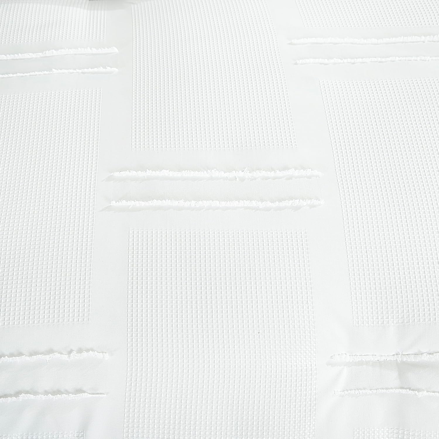 Experience the elegance of this sophisticated set, featuring a clip jacquard striped pattern with a contemporary geometric design. The unique waffle textured fabric adds depth and dimension, creating a stunning visual appeal that will elevate any bedroom décor. Crafted with care, this 7-piece set includes everything you need to transform your bedroom into a cozy retreat. The set includes a comforter, two matching pillow shams, one flat sheet, one fitted sheet, and two pillowcases. Made from high-quality polyester, the comforter set is designed for durability and long-lasting comfort. The soft and breathable fabric ensures a restful night's sleep, while the lightweight feel provides warmth without the weight. The sheet set included is white and is a brushed microfiber for a softer touch. While the fitted sheets fit mattresses up to 15 inches deep pocket. Upgrade your bedroom décor with the Chezmoi Collection Clip Jacquard Geometric 7-Piece Bed in a Bag Comforter Set and enjoy the ultimate sleeping experience every night. Add a touch of luxury to your home with this exquisite bedding ensemble today!