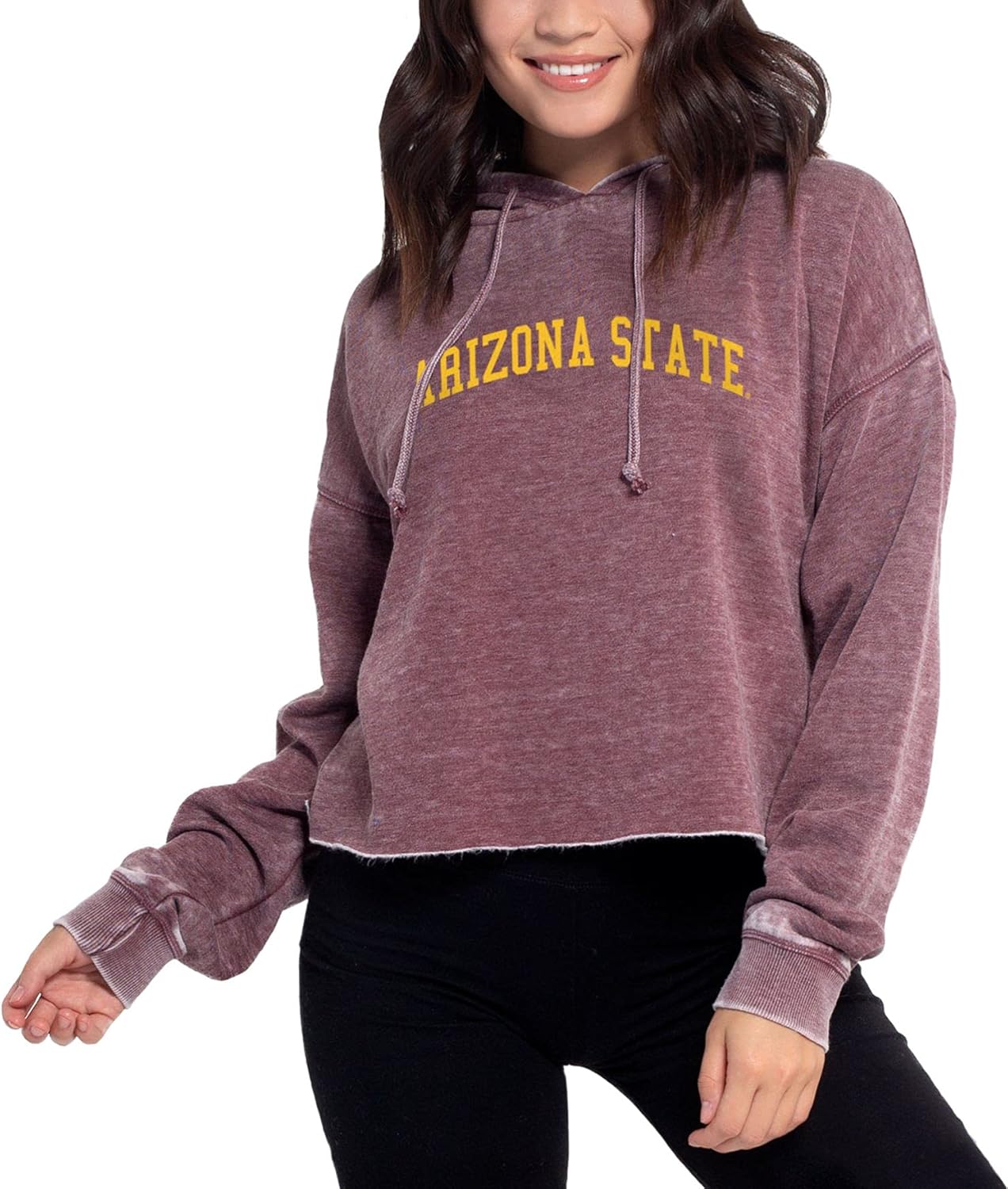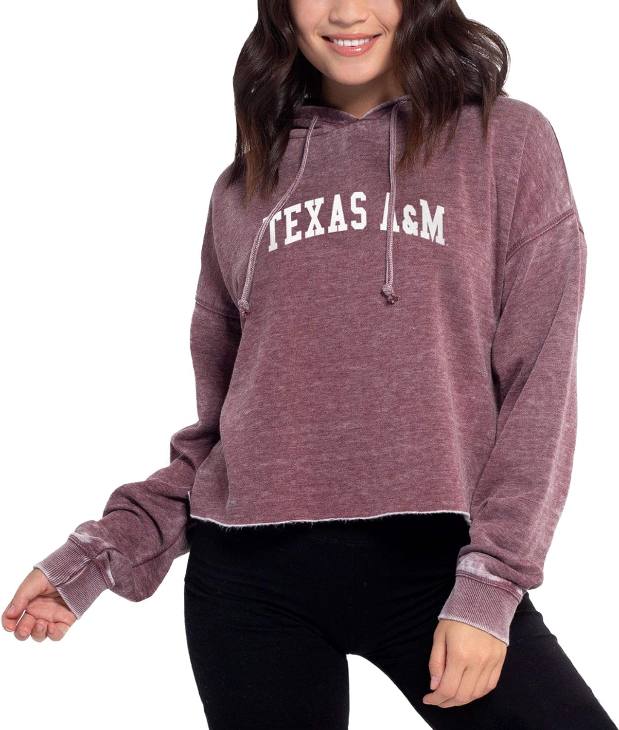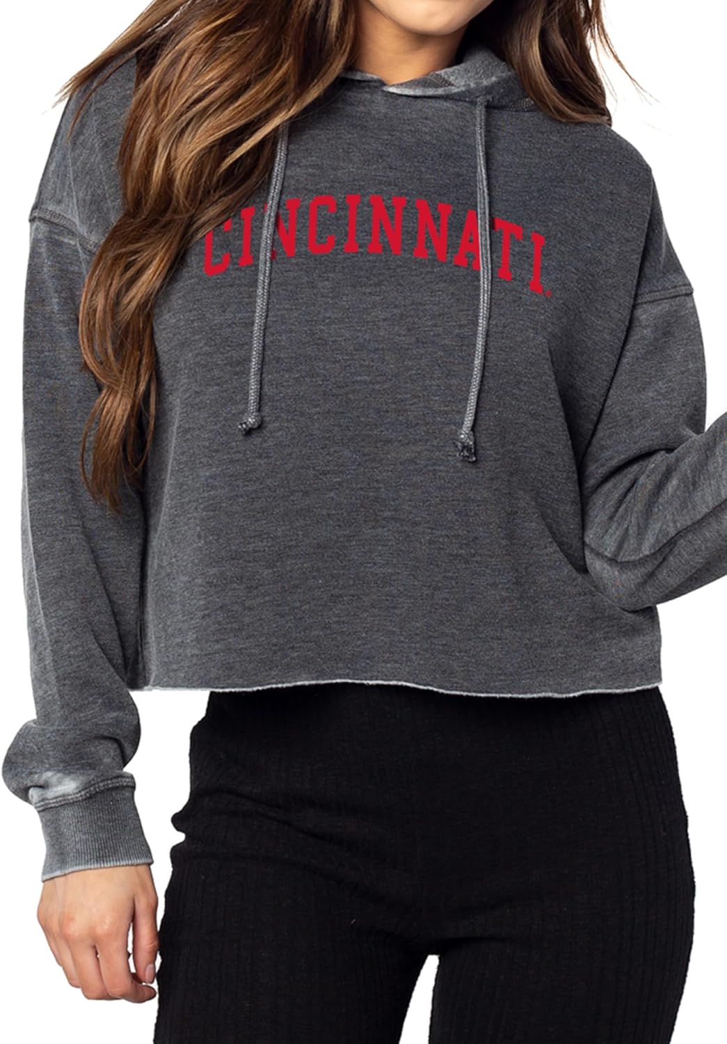 This on-trend cropped hoodie is sure to turn heads on gameday. It features a raw edge hemline, drawstring hood and dropped shoulders. The burnout wash process provides a unique, washed and worn look and a comfortable feel. The super soft burnout fleece fabric is made of a 60% Cotton, 40% Polyester blend and is made complete with an officially licensed graphic on the center chest.