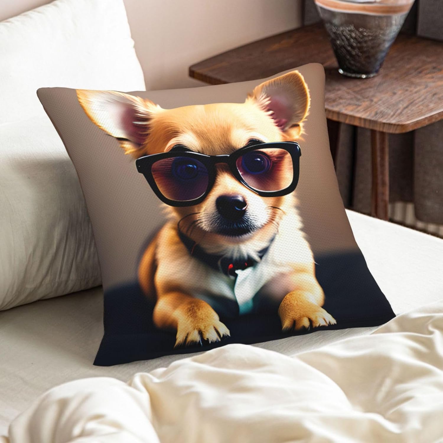 Wrap yourself in the relaxed elegance of our Chihuahua Dog Glasses 1 print imitation linen pillowcase, which is a versatile addition to any space. This product is made of premium imitation linen fabric, integrating the eternal charm of linen pillowcases with modern practicality. Whether decorating your sofa, chair, garden, car, bed, or office, it will give people a low-key and exquisite feeling. Breathable texture keeps you cool in summer and comfortable in winter, making it a favorite all year round. Adopting an invisible zipper design, the appearance is seamless and easy to use. These stunning pillowcases are not only suitable for living room sofas or bedrooms, but also great present for family and friends. Fit for birthdays, anniversaries, and gatherings, it is the flawless way to add a touch of elegance to any occasion! It is not just a linen pillowcase, but also a canvas to showcase your personal style. Enhance your space with linen yarn, conveying comfort and elegance
